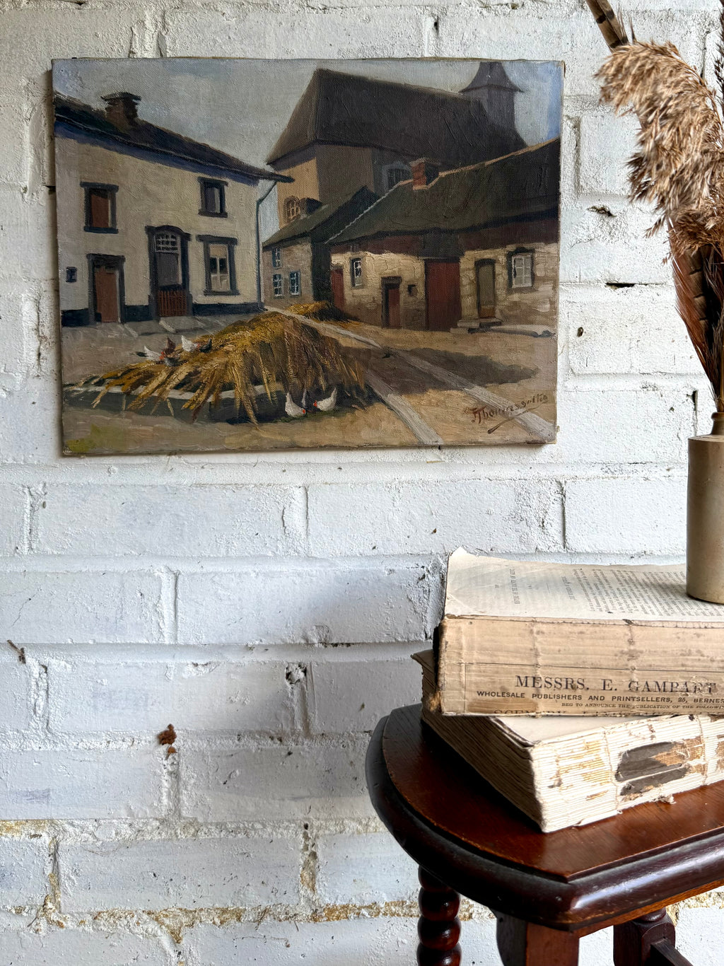 Early 20th Century Signed Oil on Canvas “The Hens”
