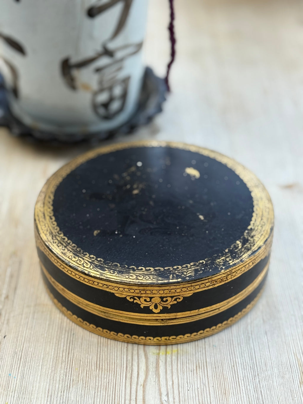 Circa 1880s: Hand Painted Papier Mache Travelling Spice Box