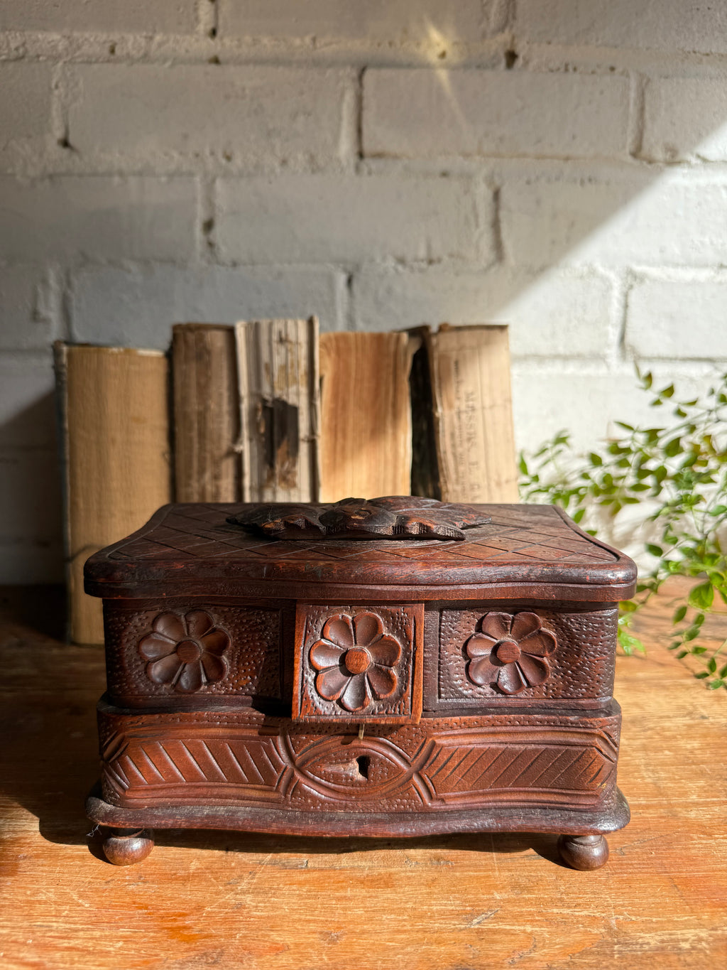 Early 20th Century Carved Wooden Jewellery Box