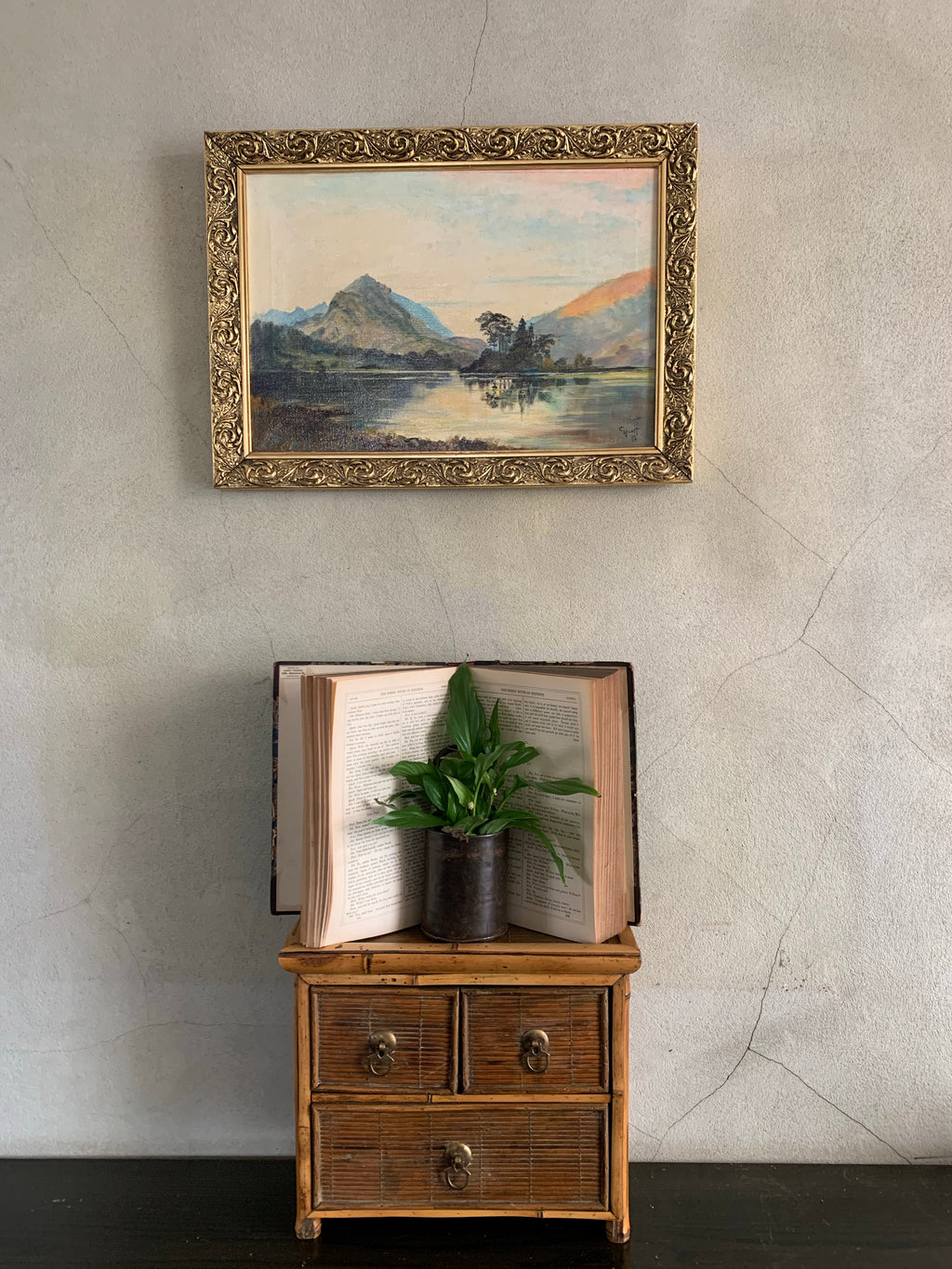 A Lake at Sunset: Signed Oil on Canvas