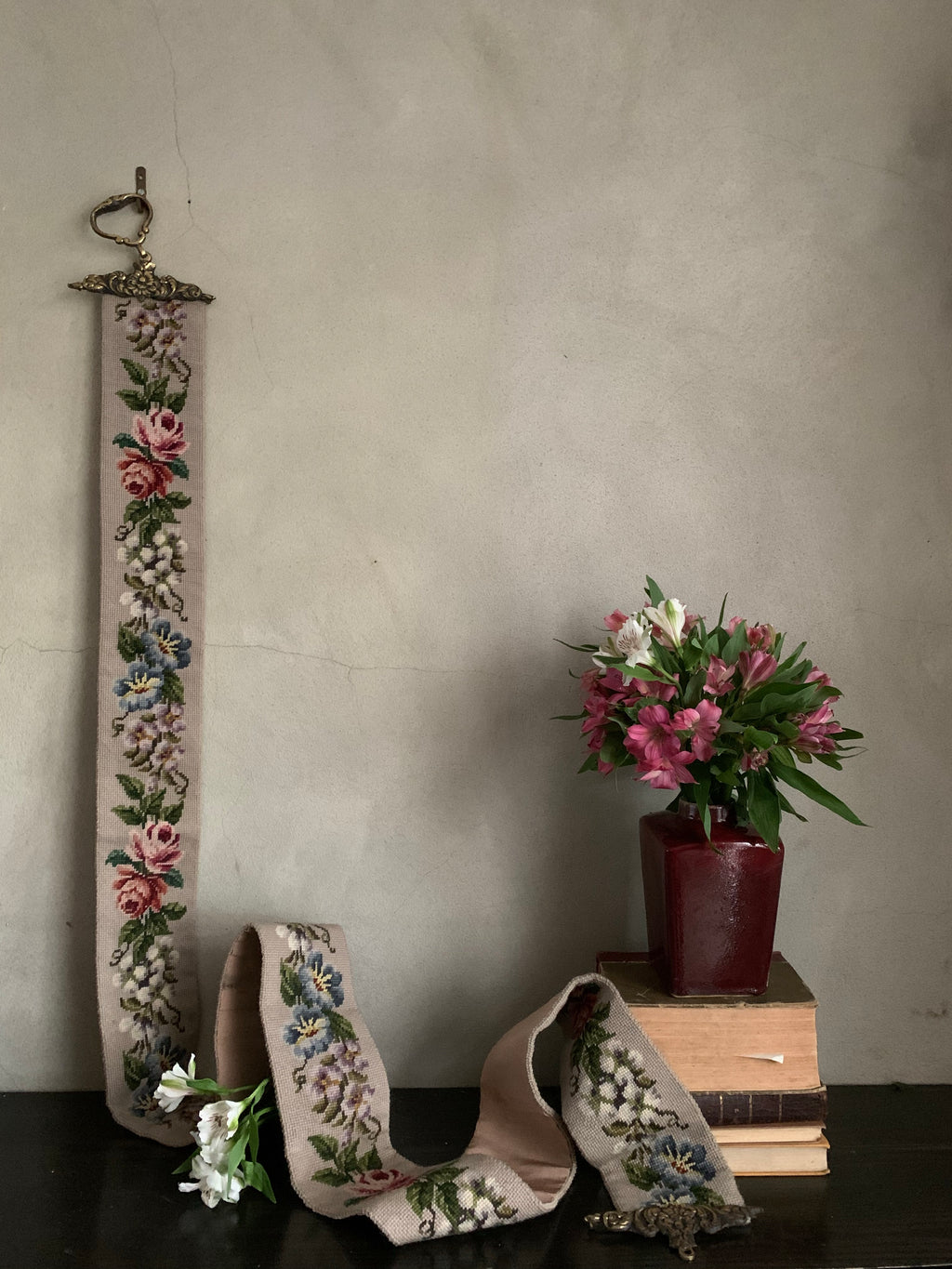 Very Long Antique Tapestry Wall Hanging/Bell Pull with Gilt Ends