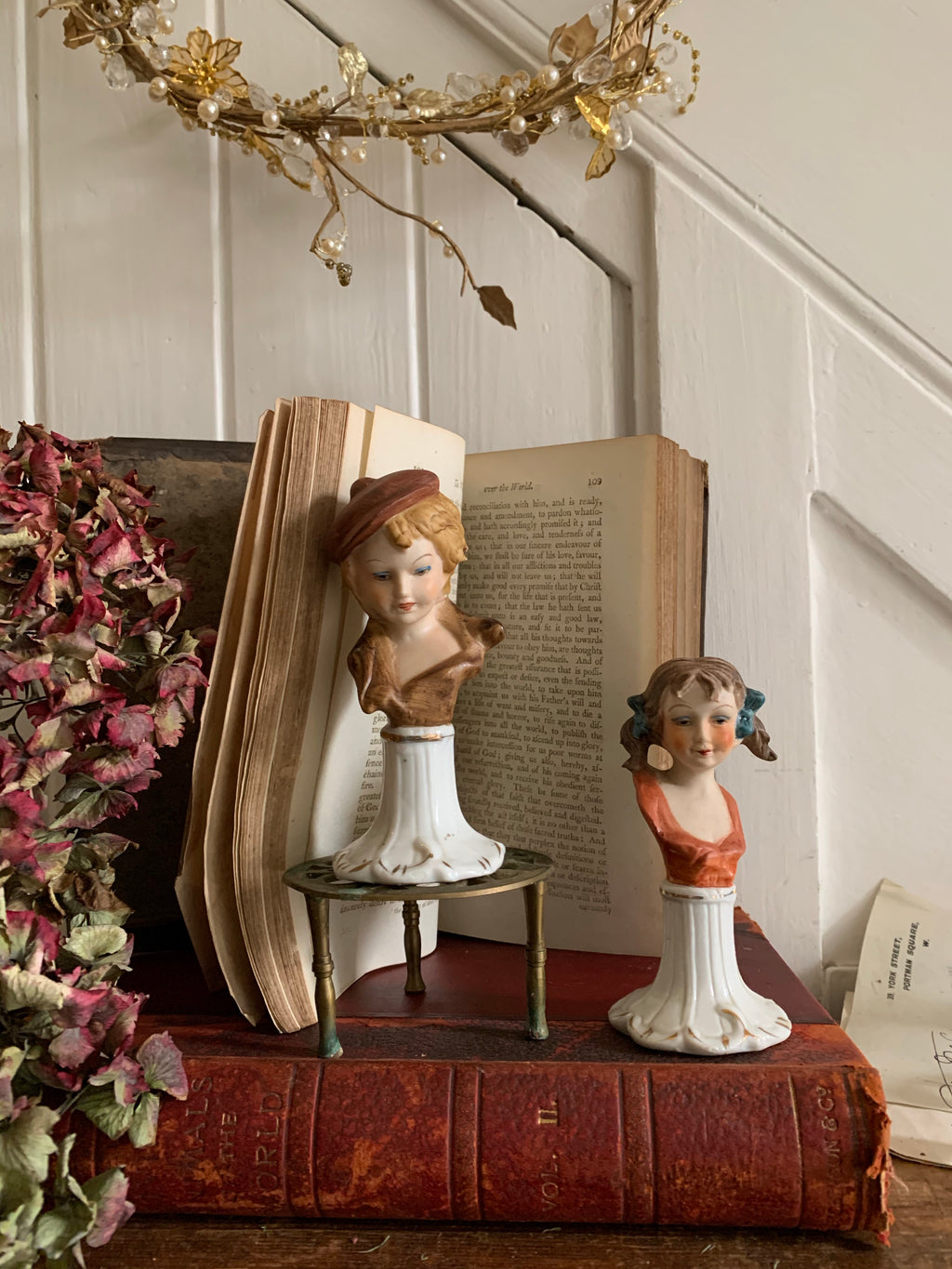 Pair of Capodimonte Porcelain Figurine Busts of a Boy & Girl