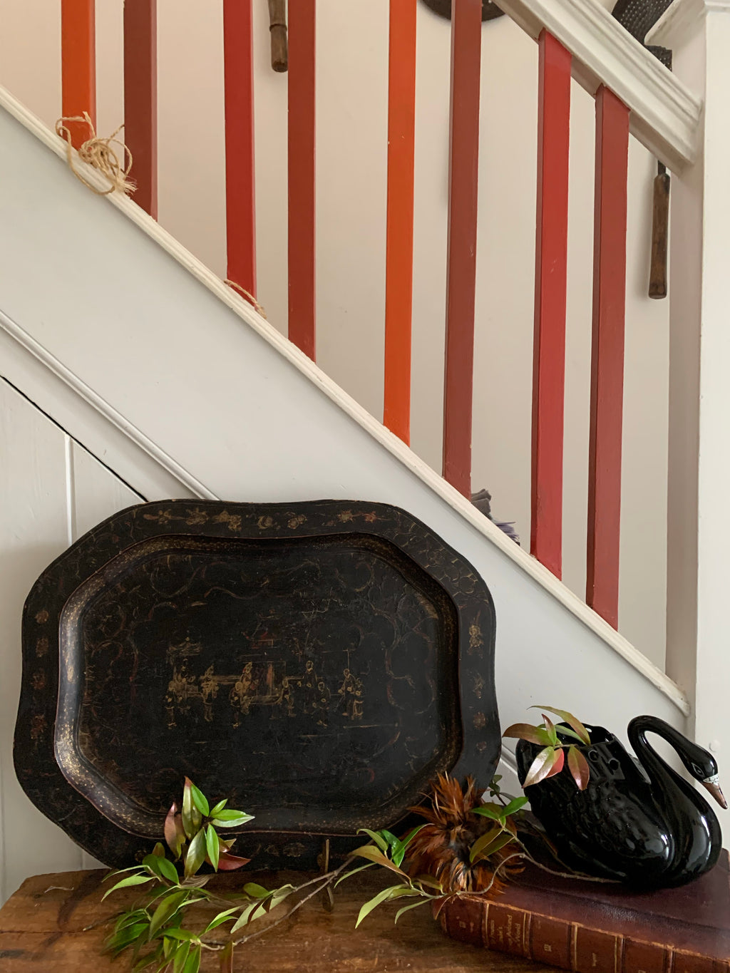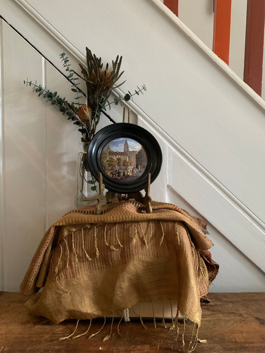 Miniature Framed Convex Porcelain of a Town Sqaure