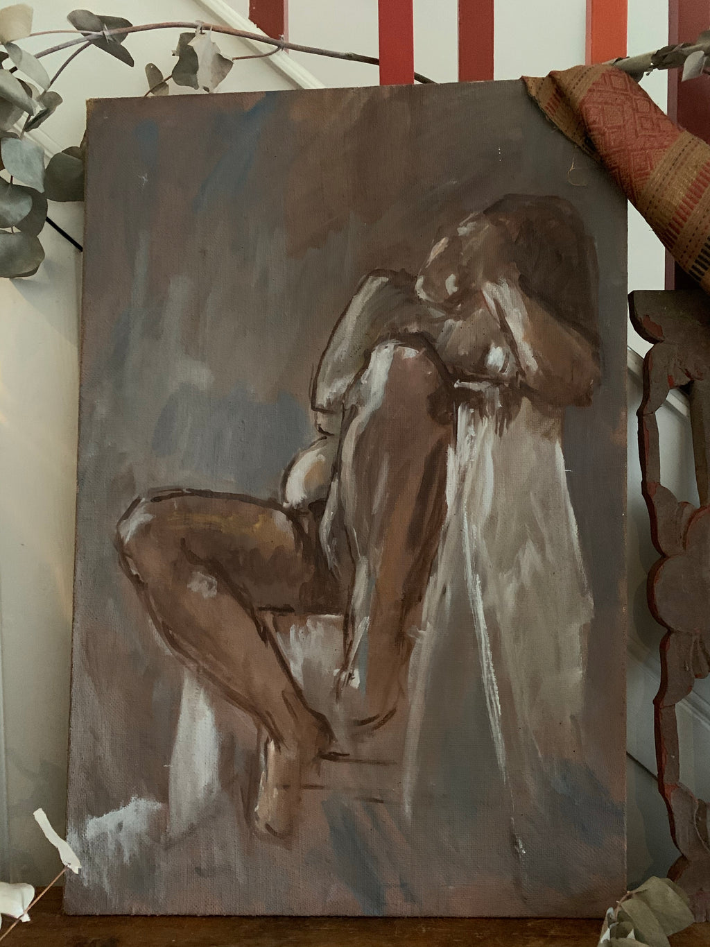 Nude Portrait In Neutral Hues- Oil on Streched Hessian Cloth