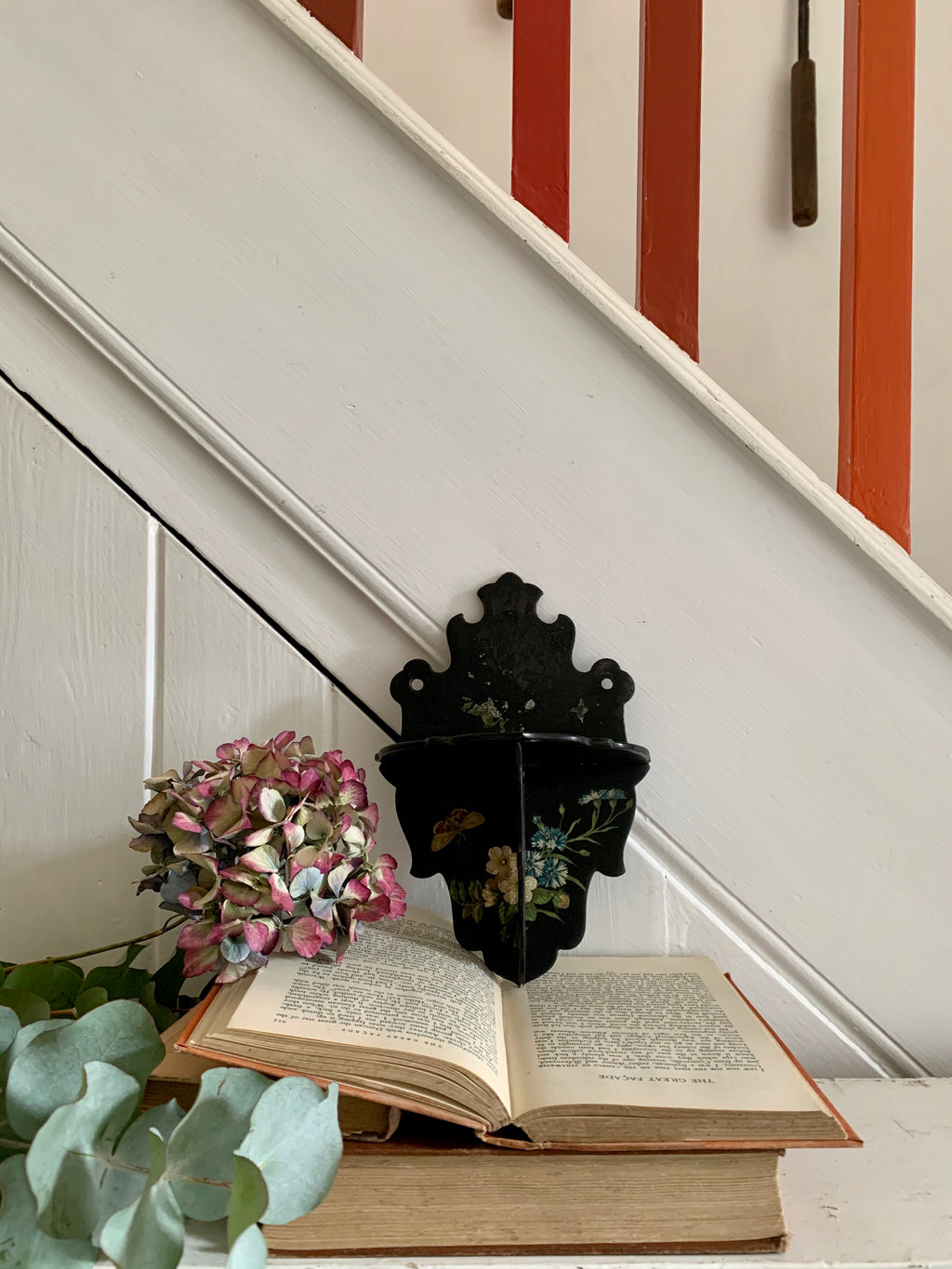 Little Antique Papier Mache Black Lacquer “Chinoiserie ” Folding Wall Sconce