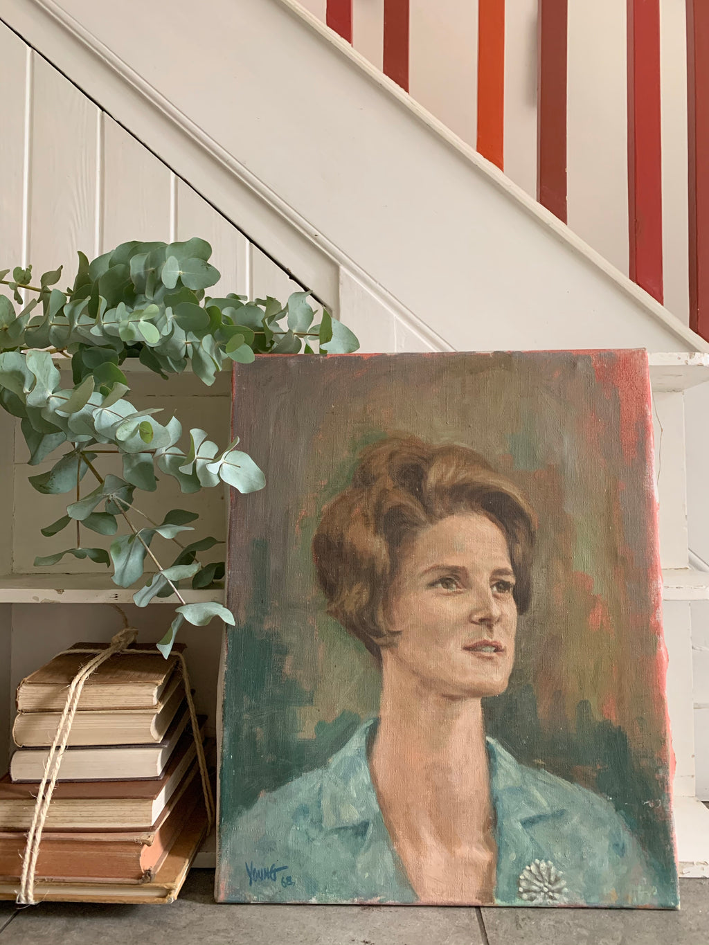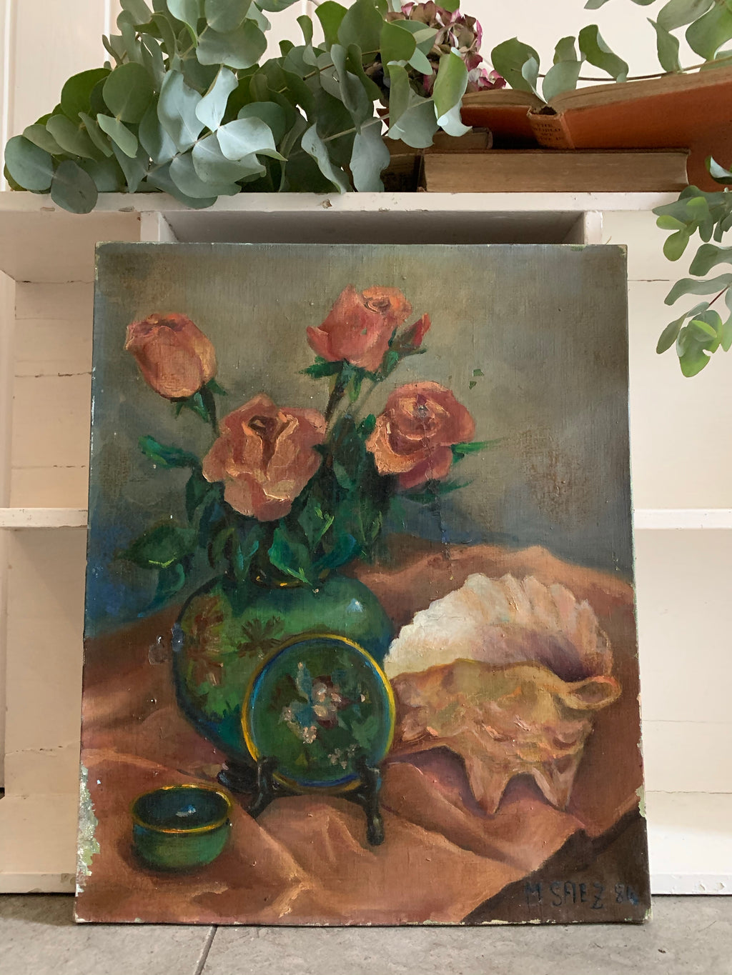 Floral Still-Life with Shell - Vintage Oil on Canvas