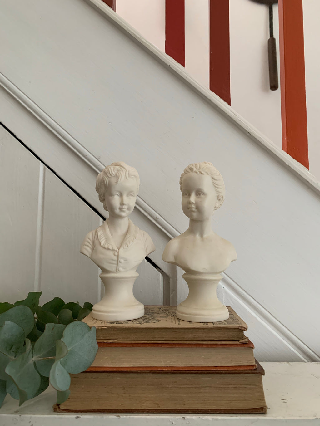 Pair of Bisque Porcelain Busts of a Parisien Boy & Girl
