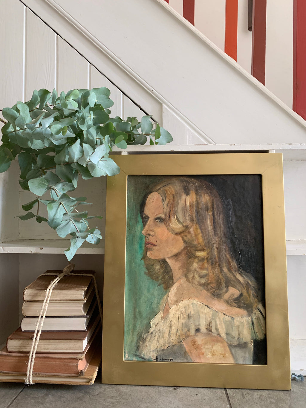 Lady with a Ruffle Dress - Framed Oil Painting on Canvas