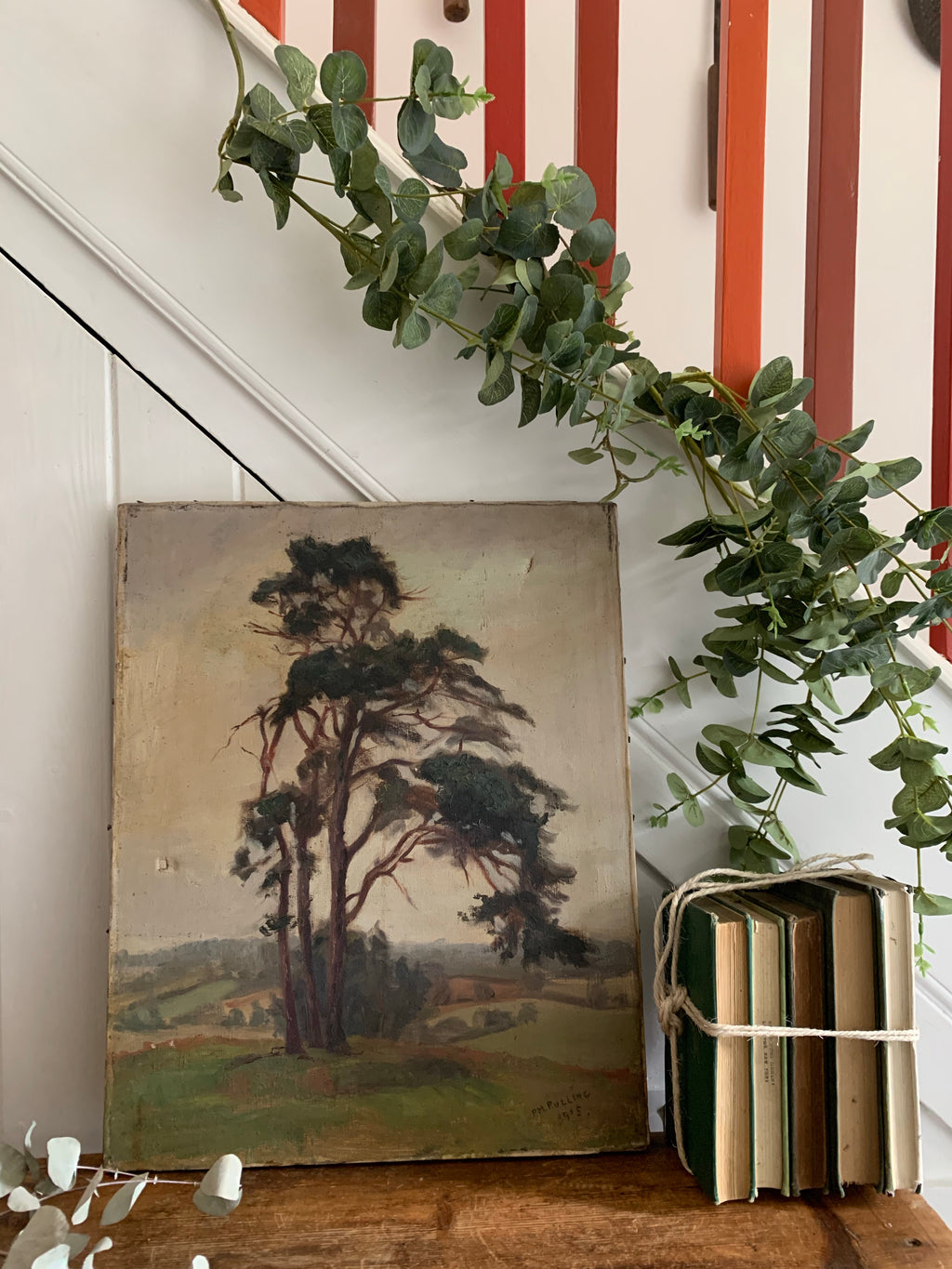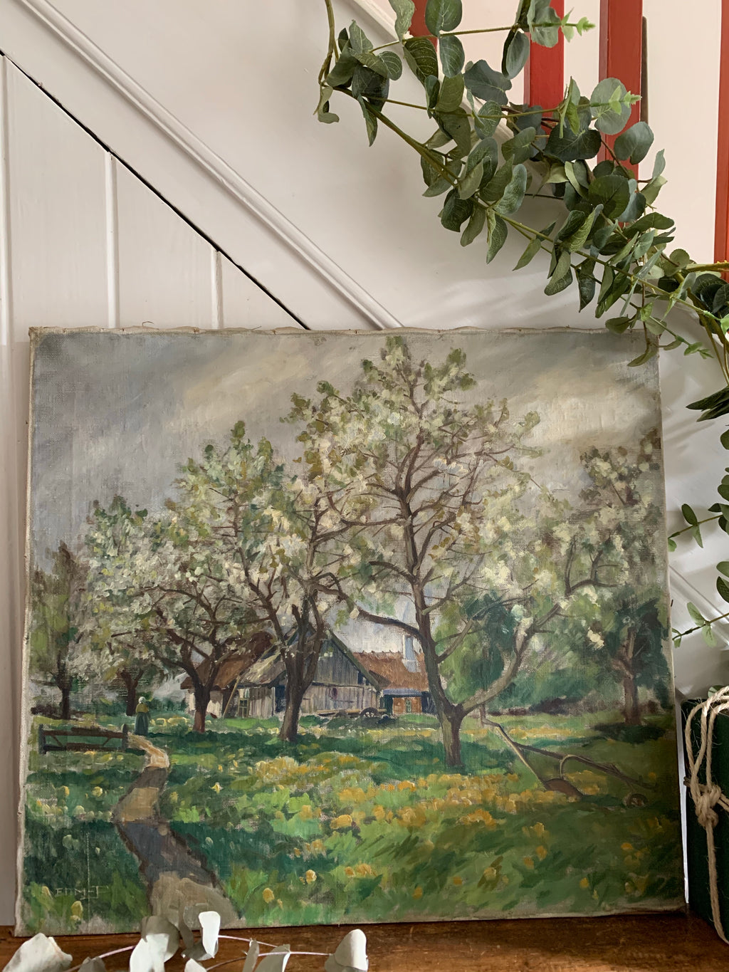 A glimpse of a cottage through the trees: Large Oil on Canvas