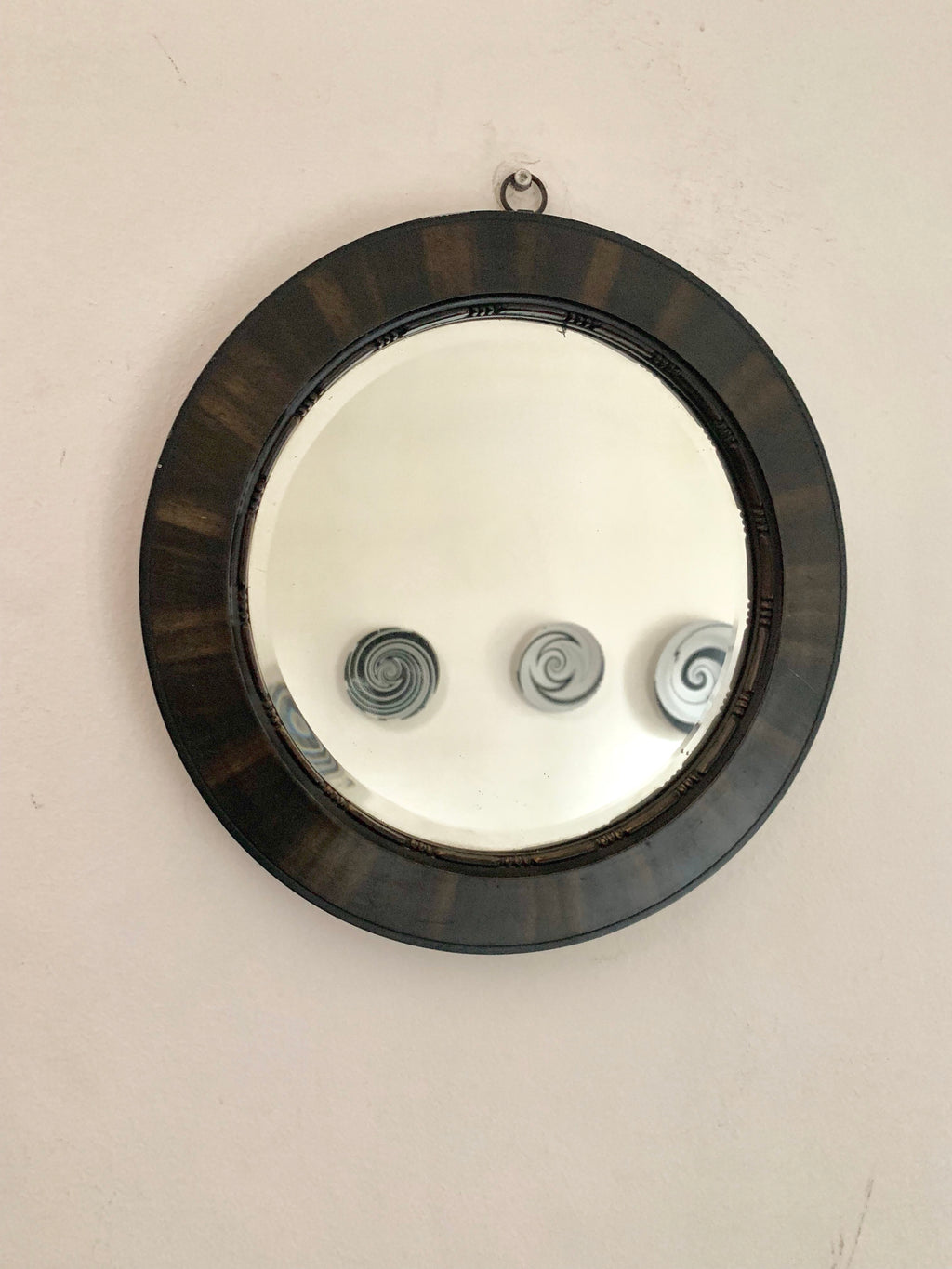 Small Round Wooden Mirror with stripe detail