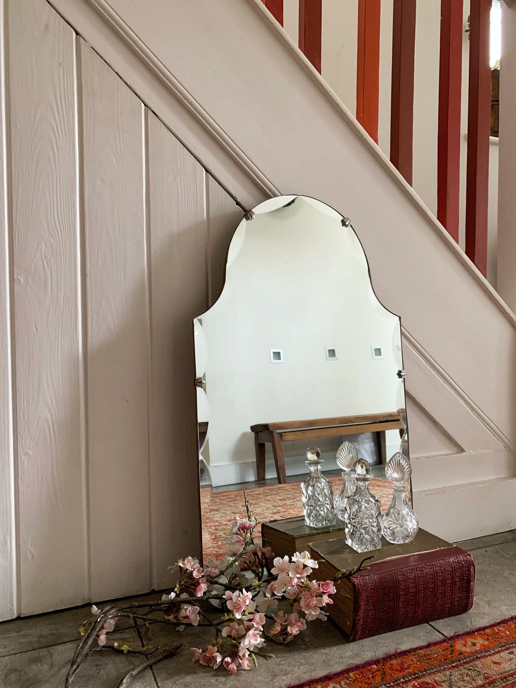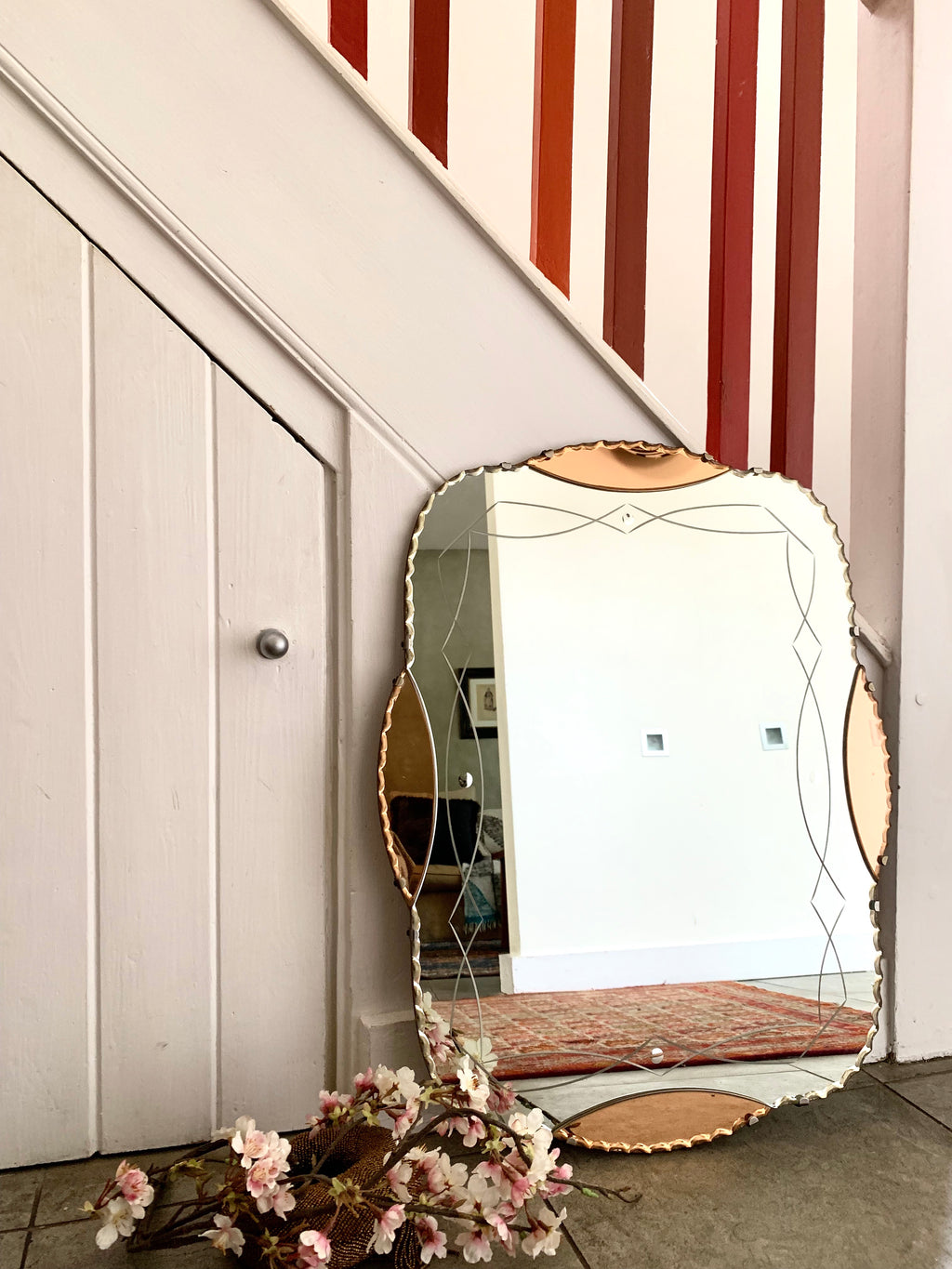 Beautiful Art Deco Mirror with peach glass