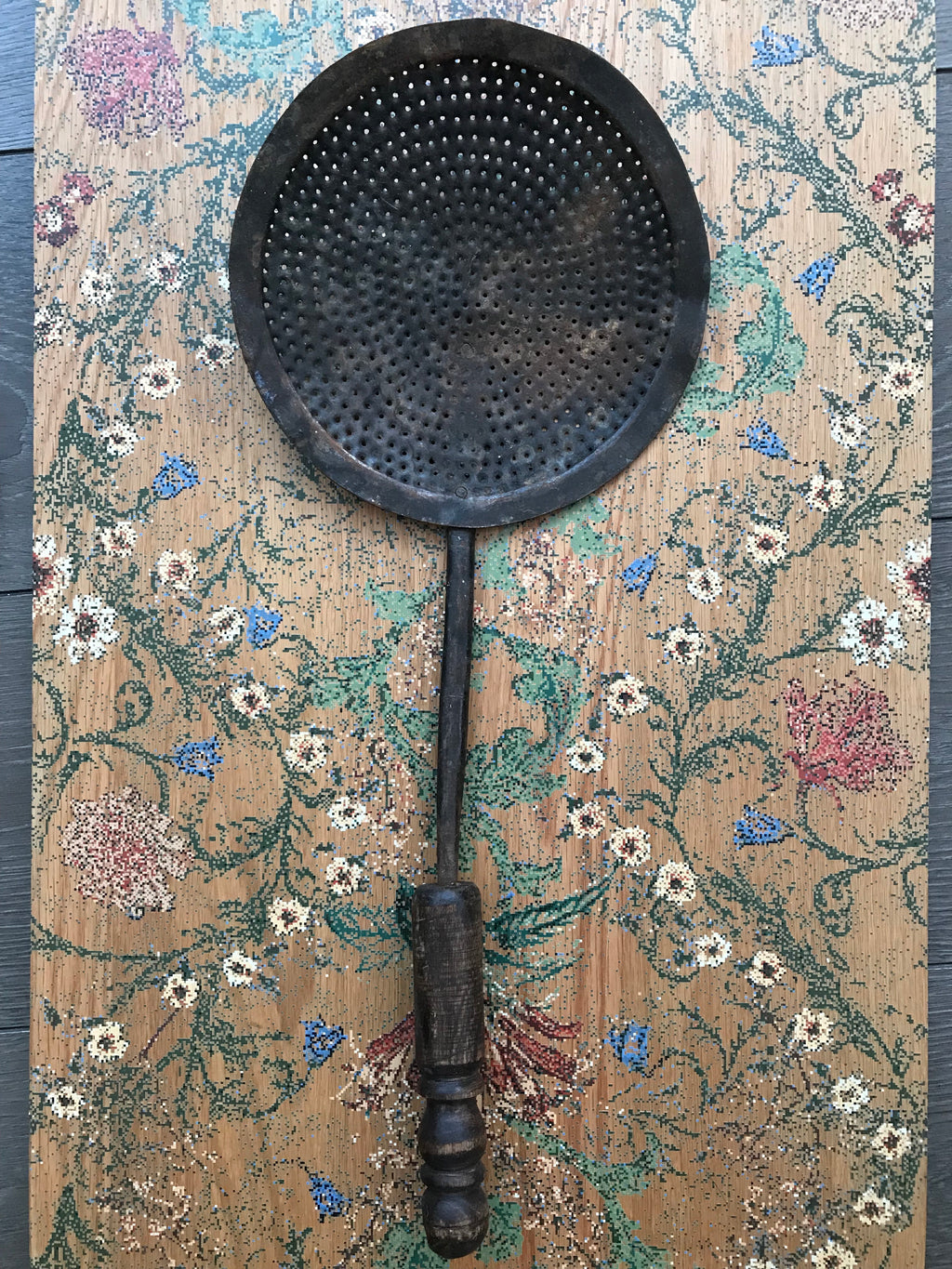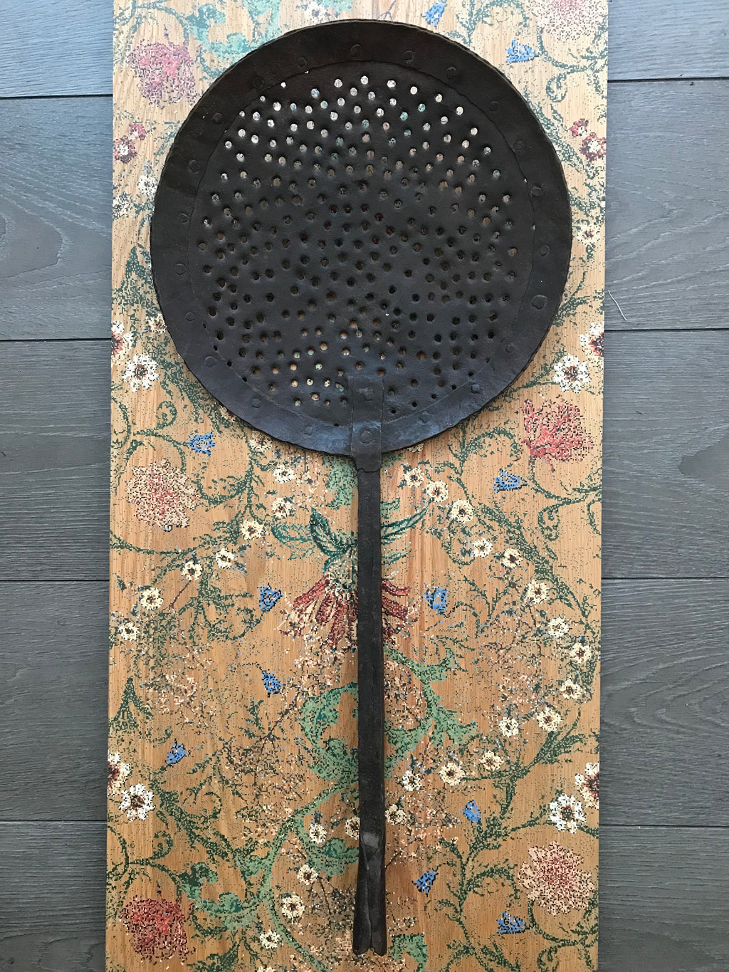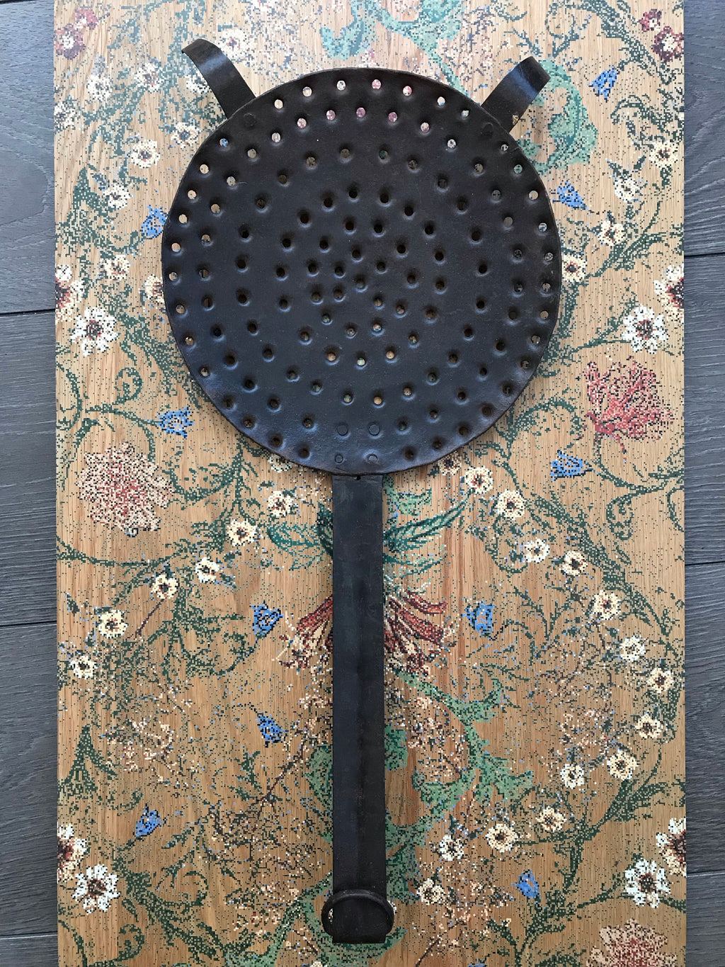 Small Antique Iron Pan/Chestnut Burner with wooden handle