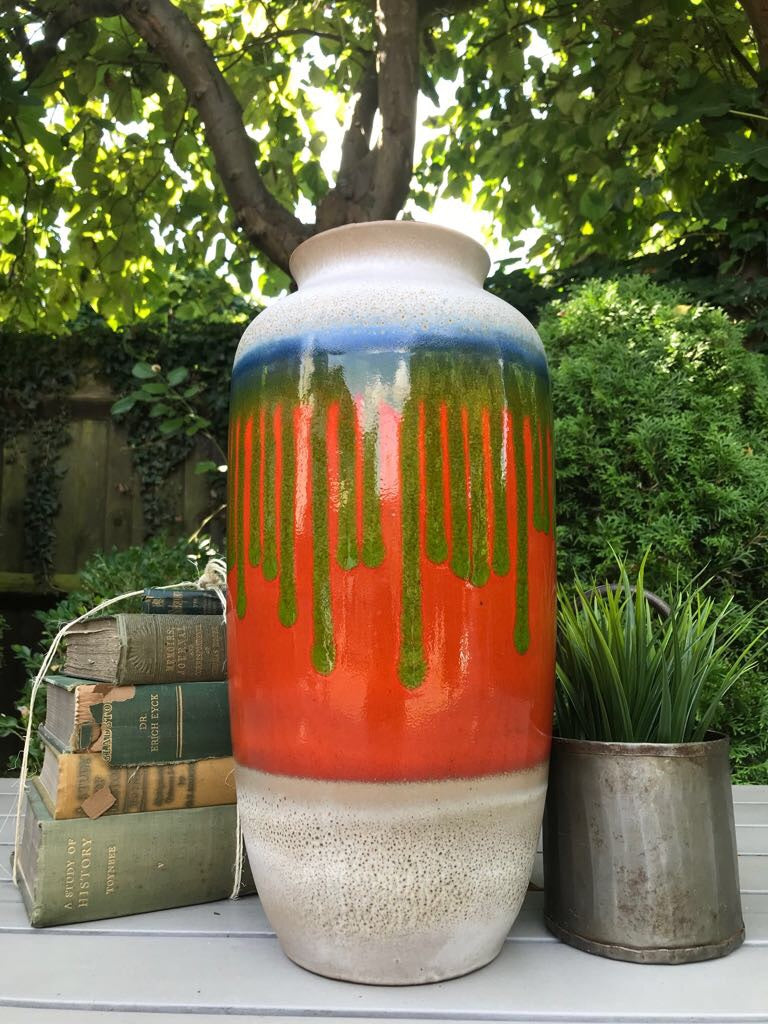 Vintage Ceramic Biscuit Bucket with Rattan Handle