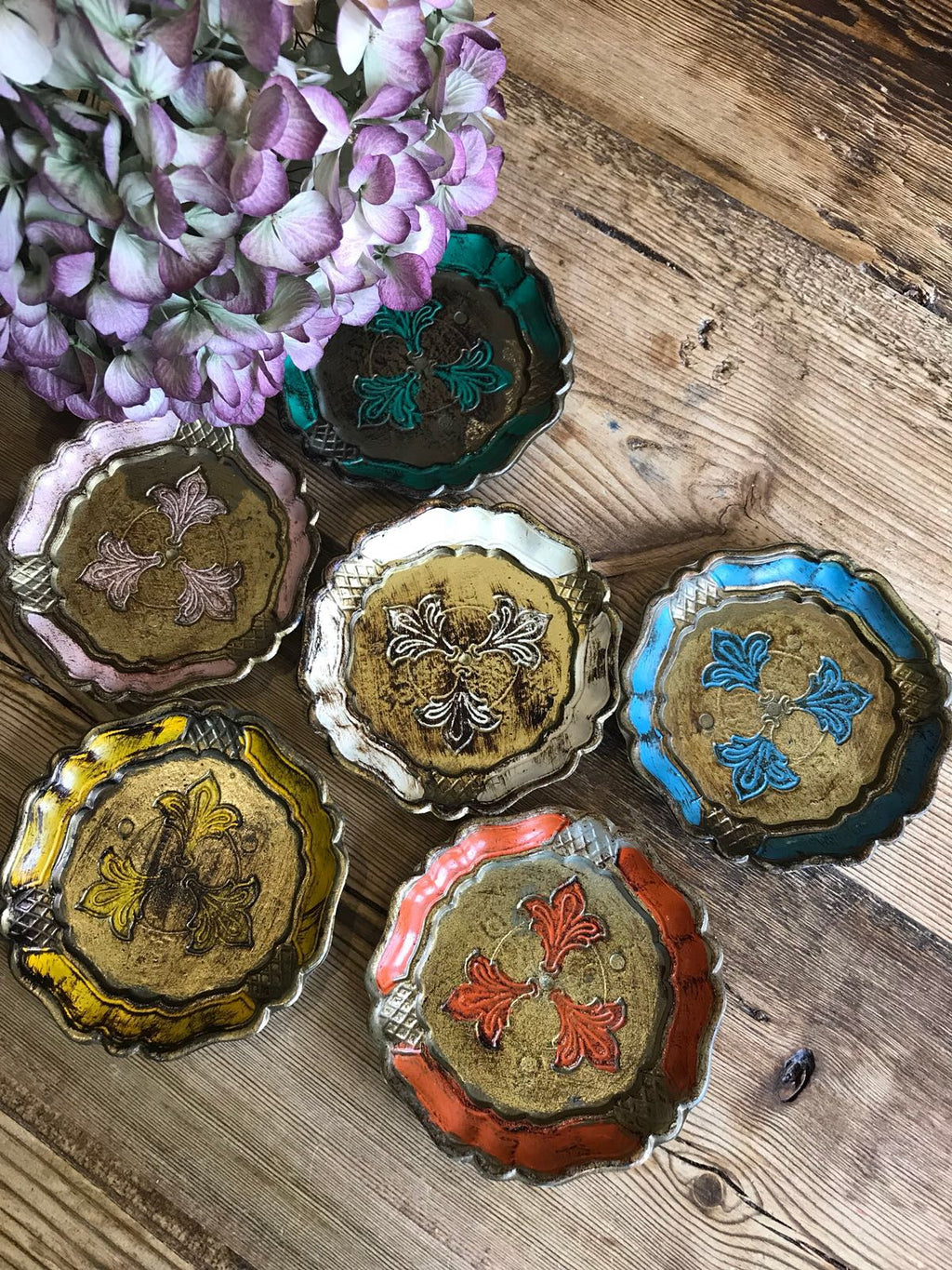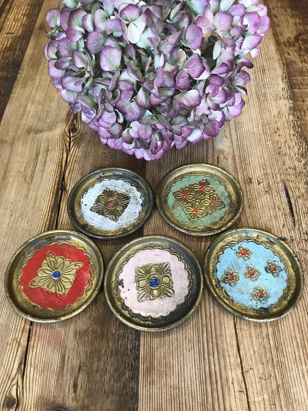 Five Vintage Italian Florentine Coasters - Colour Mix
