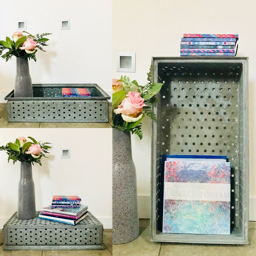 Industrial Metal Storage Tray or Wall Hanging Bookshelves