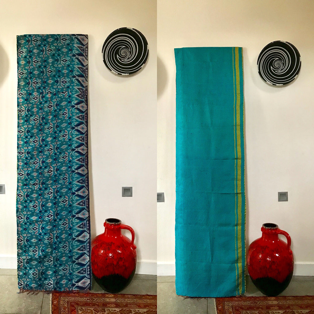 Double-Sided Silk Sari Table Runner (Turquoise and Blue)