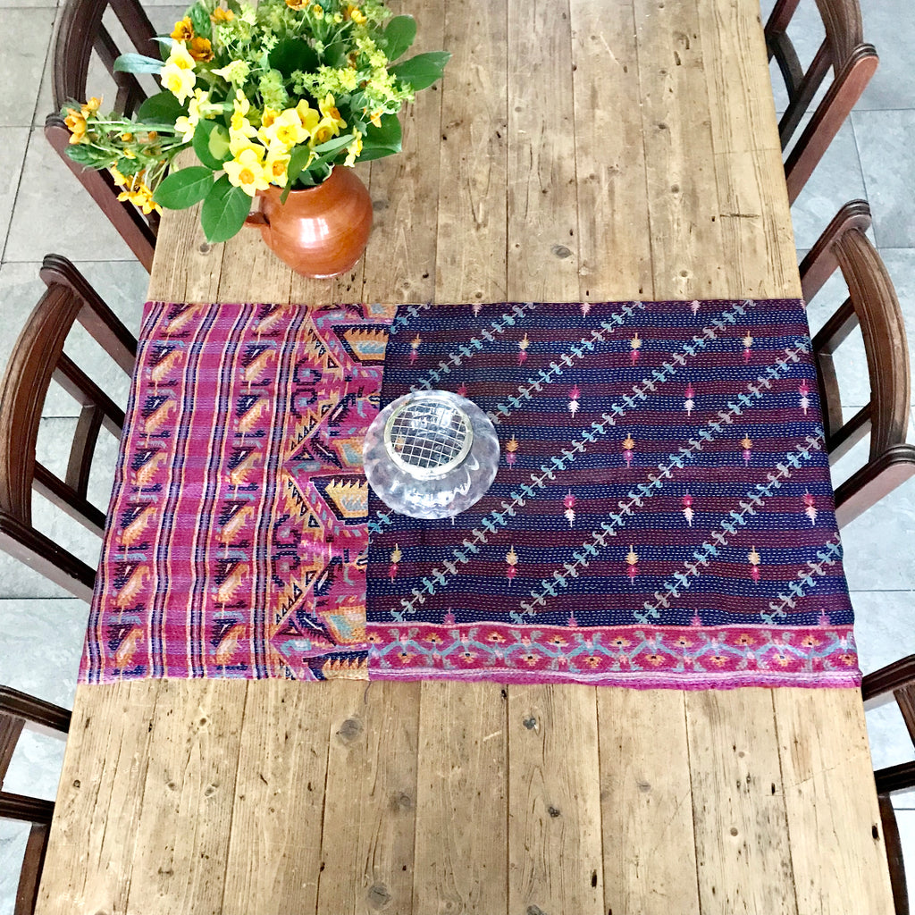 Antique Silk Sari Table Runner/Throw (double-sided)