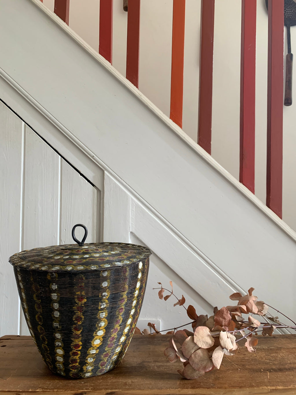 Decorative Primitive Metal Basket (red, yellow & white dots)
