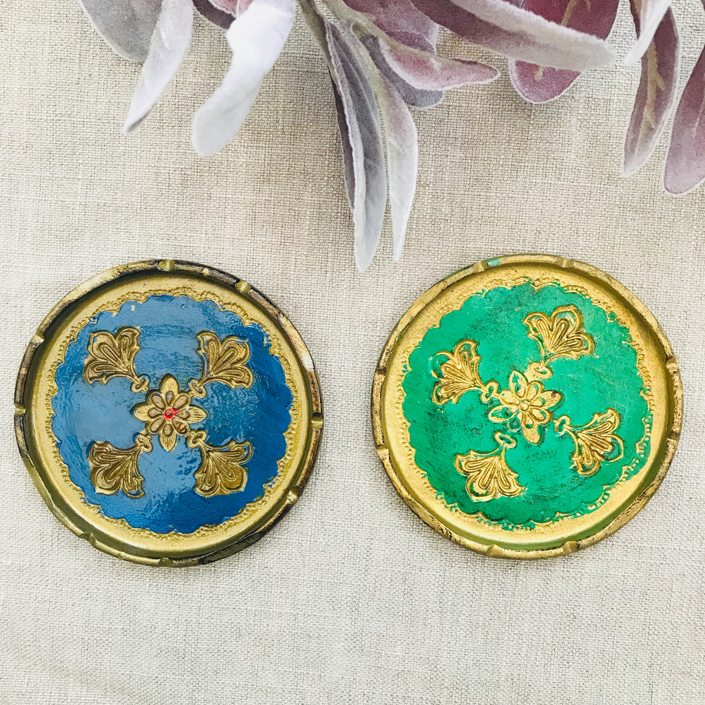 Set of Two Large Vintage Italian Florentine Coasters - Blue & Green