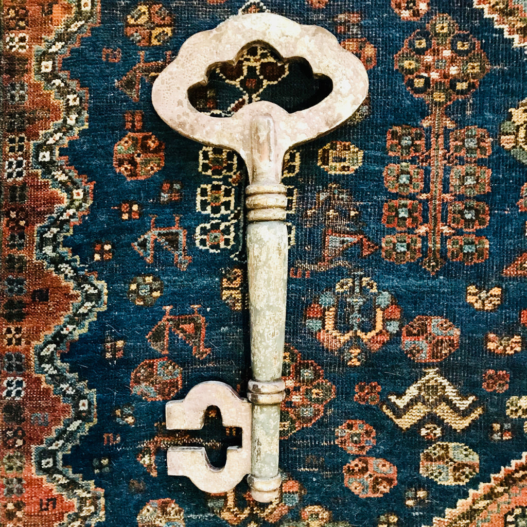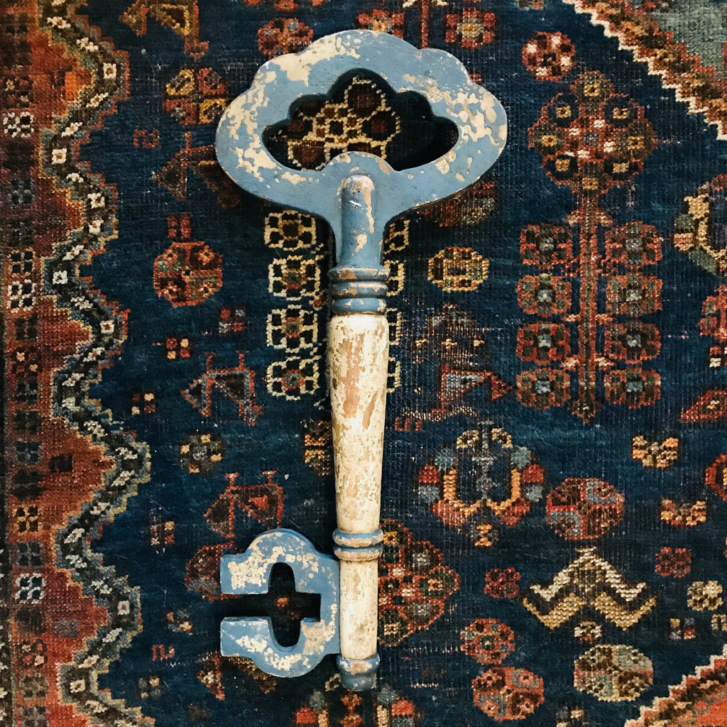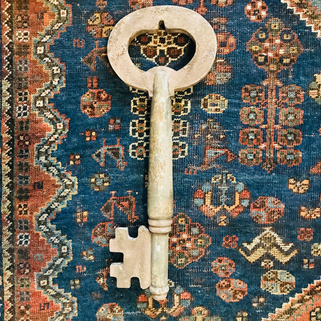 Oversized Wooden Key - Brown, Grey and Pink with curved top