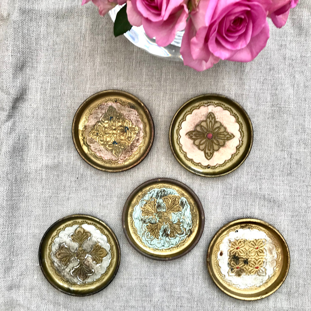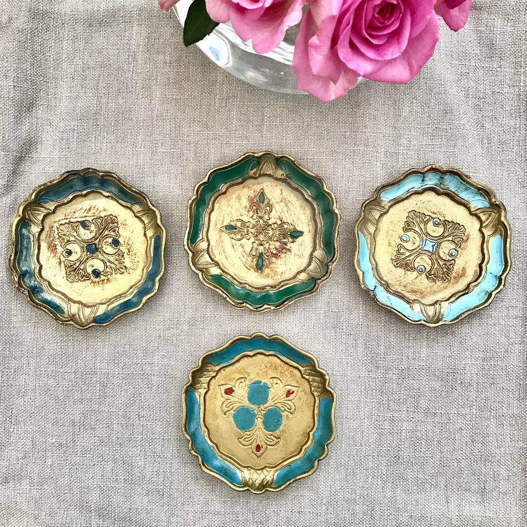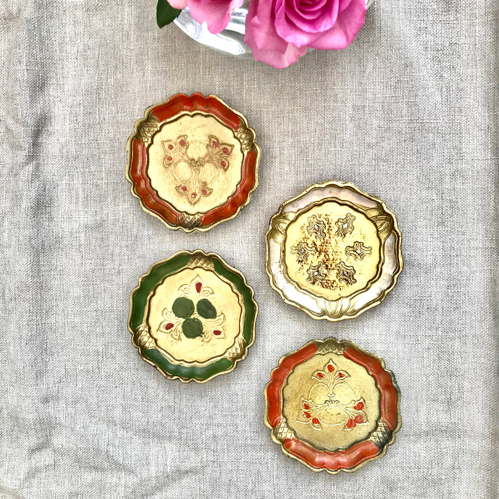 Set of Four Vintage Italian Florentine Coasters - Mixed Colours
