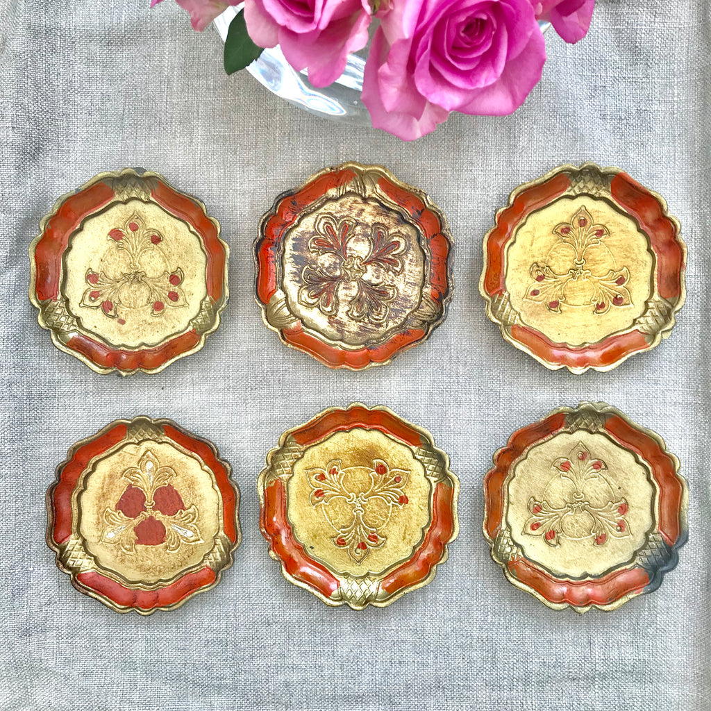 Set of Six Vintage Italian Florentine Coasters - Orange