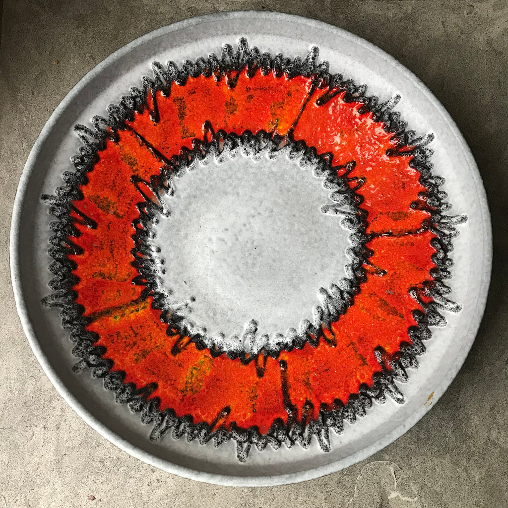 1970s West German Large Orange & Grey Decorative Plate
