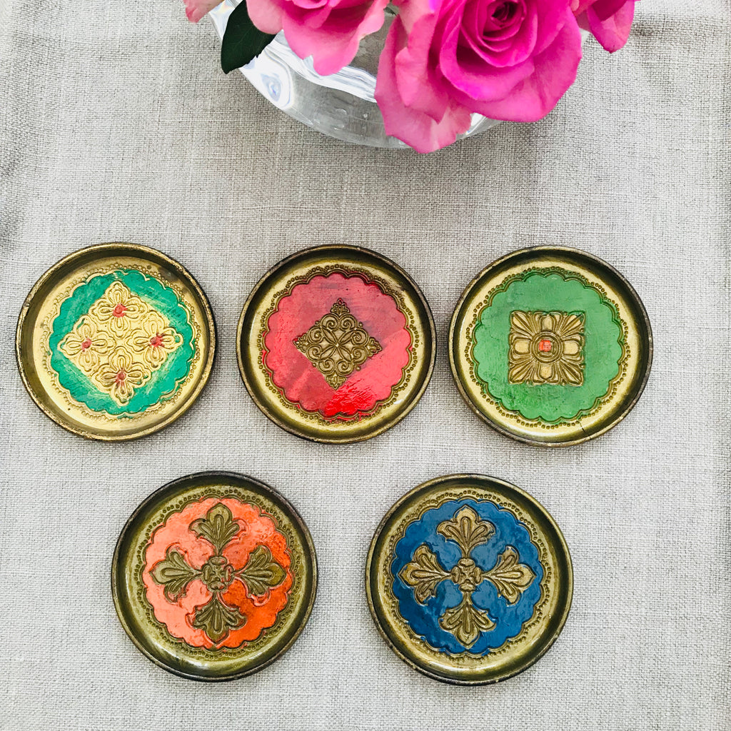 Set of Five Vintage Italian Florentine Coasters - Colour Mix