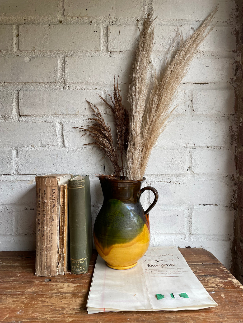 1930s Japanese Stoneware Sake Jar: Beige, Brown & Black