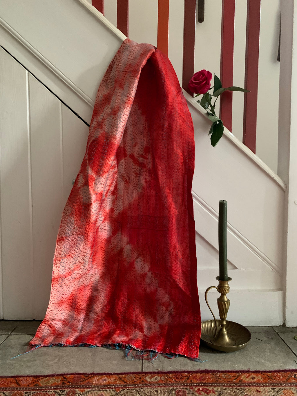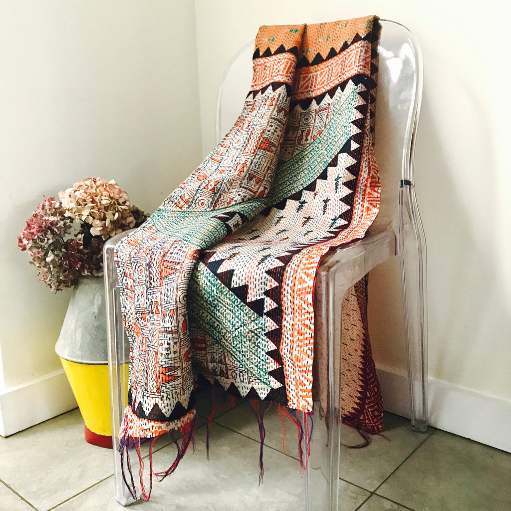 Vintage Double-Sided Sari Table Runner or Throw (Orange tones)