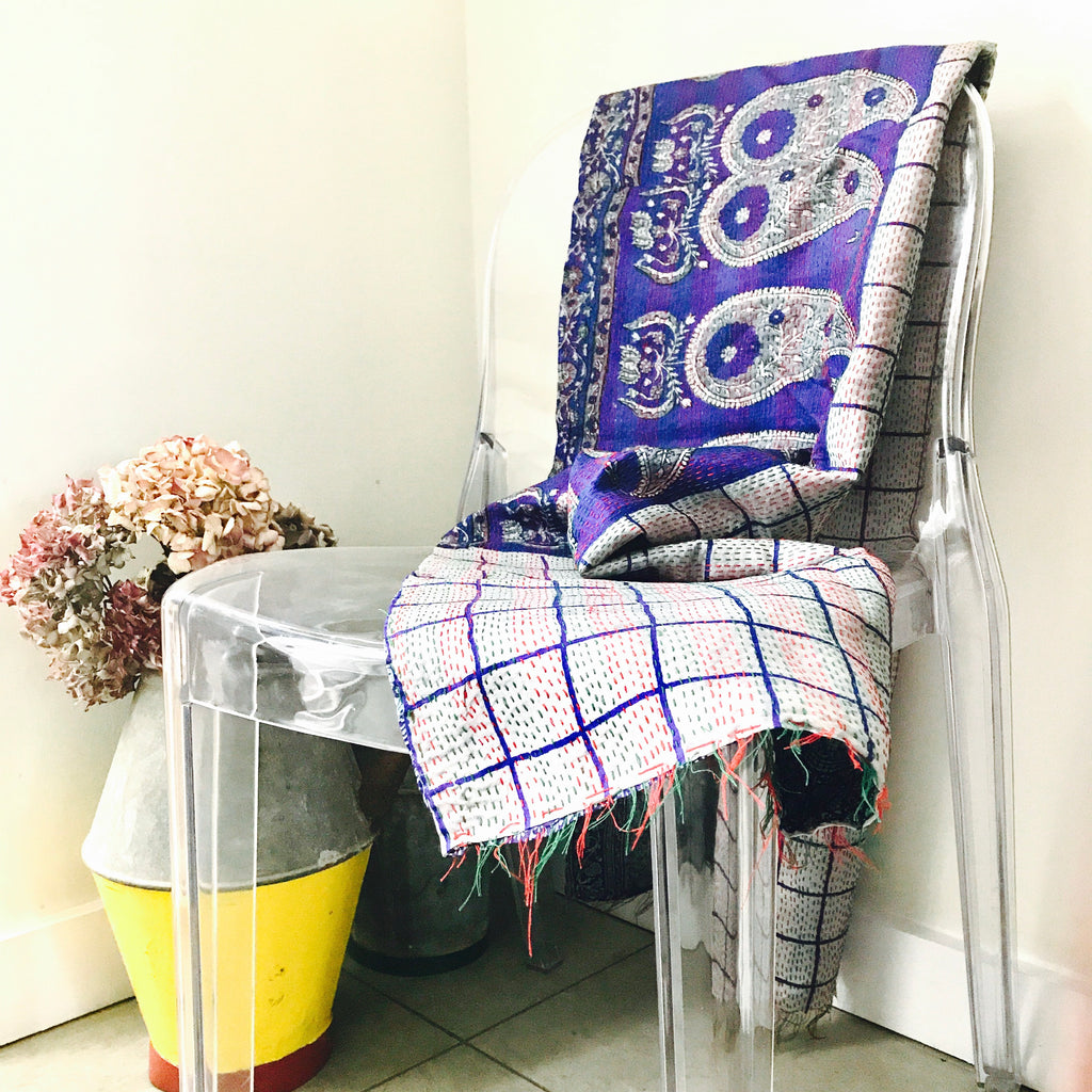 Double-Sided Sari Table Runner or Throw (Blue tones)