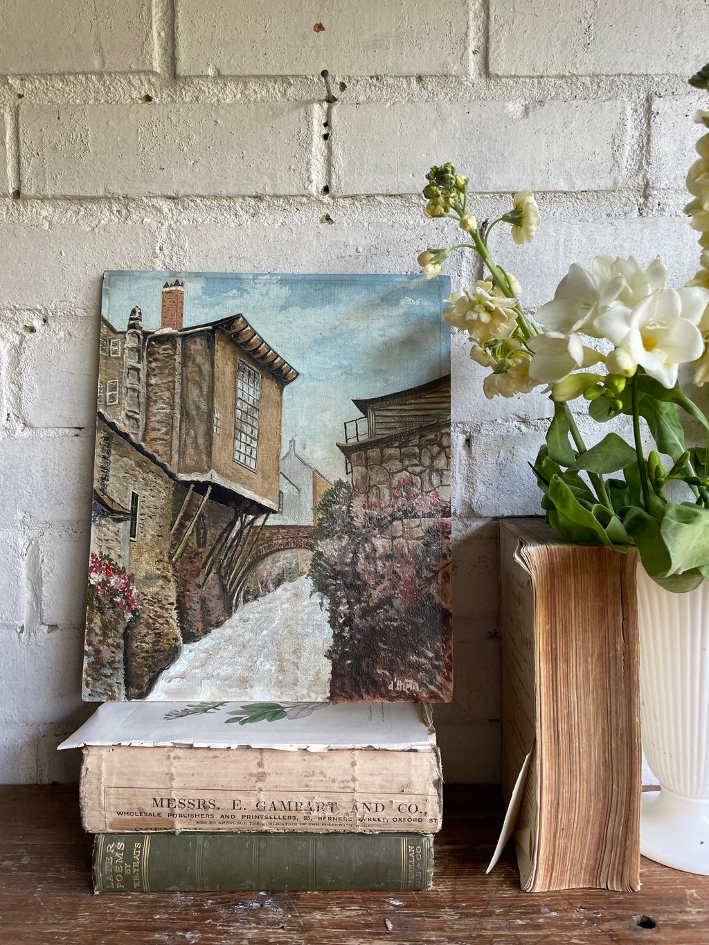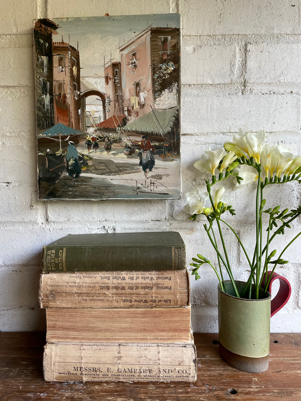 Market Street Scene : Small Vintage Impasto Oil on Canvas. Was £80 now £40