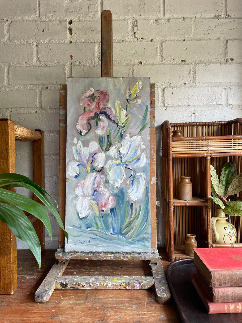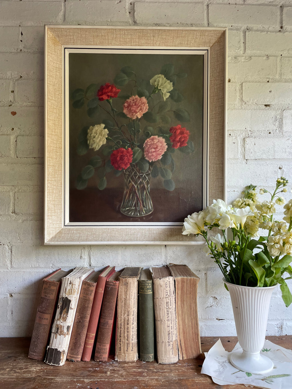 Signed Midcentury Floral Oil on Canvas in Reds & Pinks: Was £105 now £73.50 at checkout