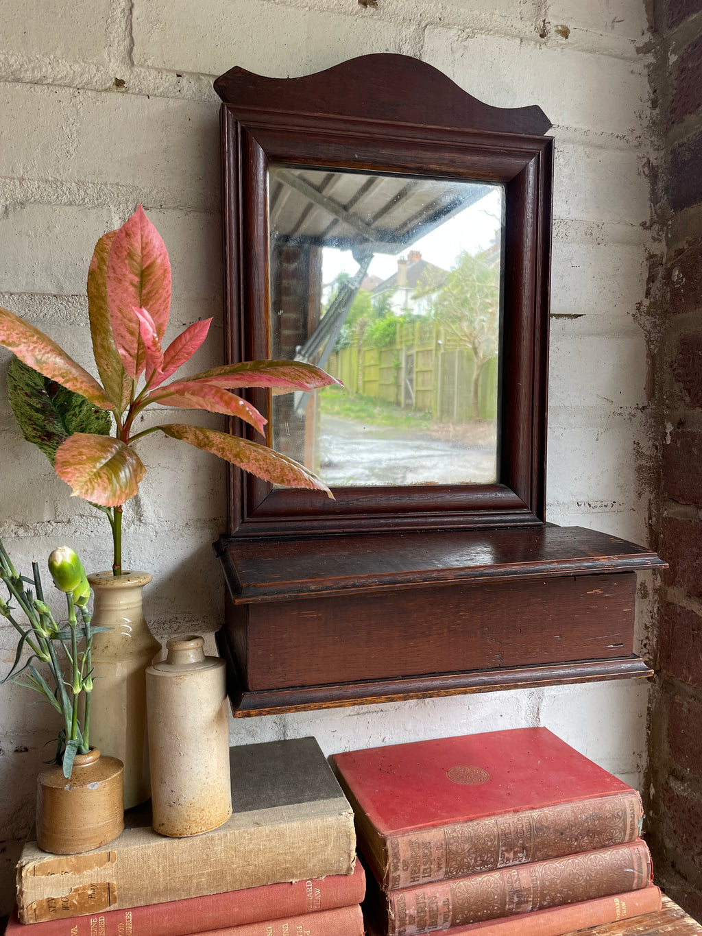 Early 1900s Oak Wall Mirror with Storage Compartment