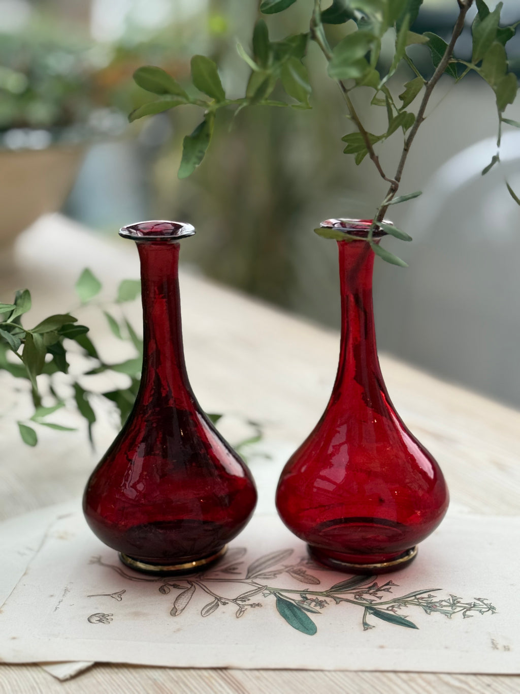 Circa 1880: Pair of Ruby Glass Bud Vases