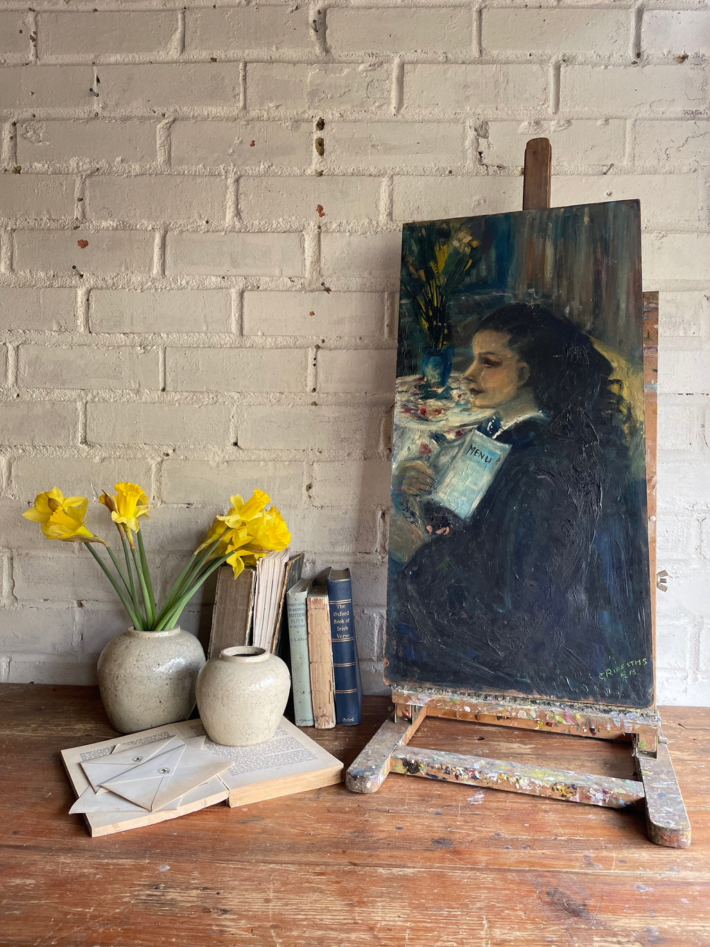 The Anticipation - Vintage Portrait Oil on Board