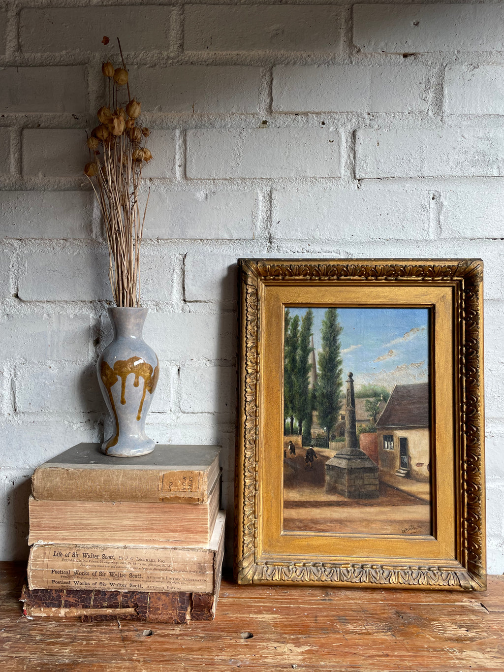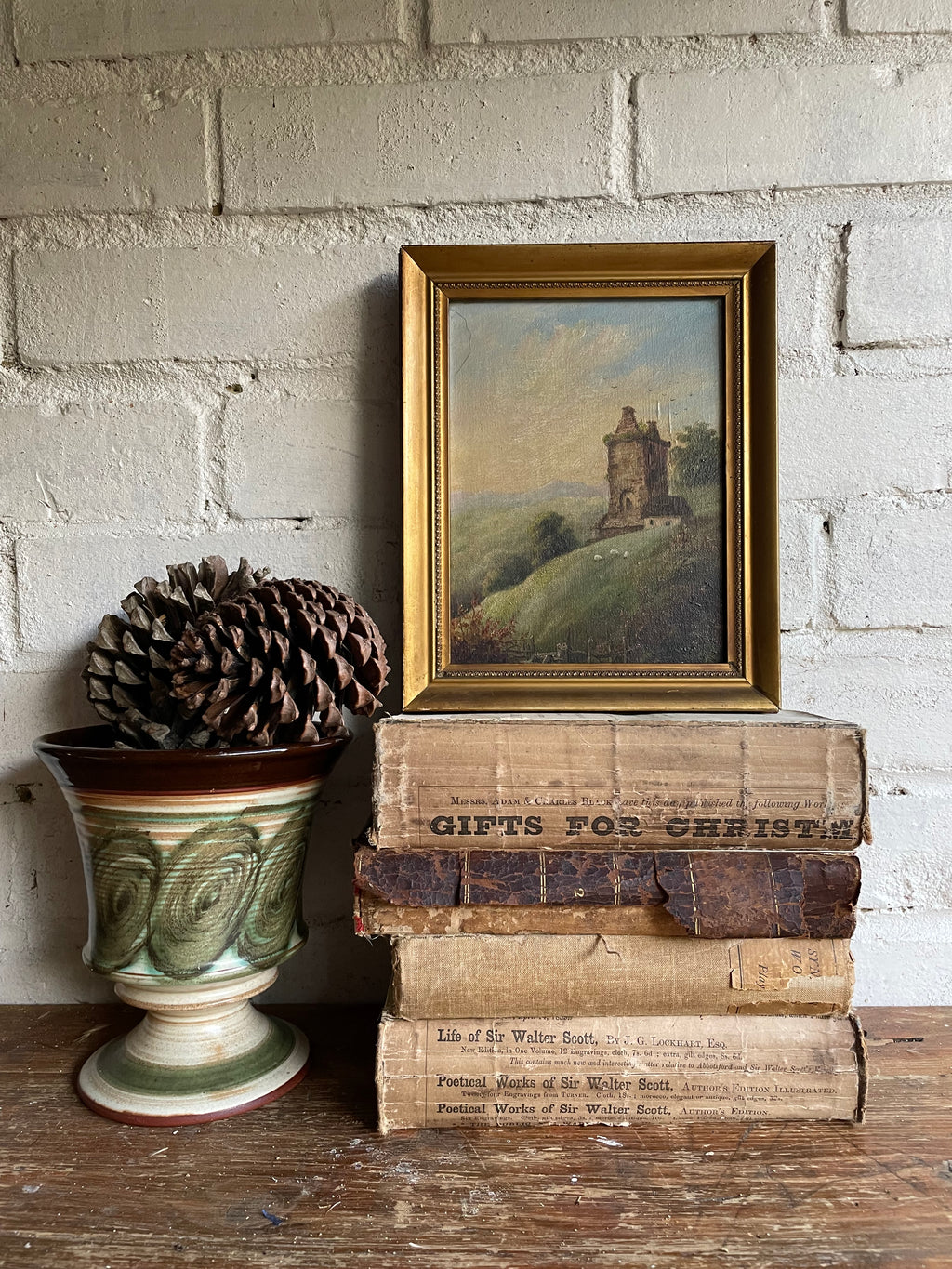 Sheep on a Hill : Small 19th Century Oil on Canvas