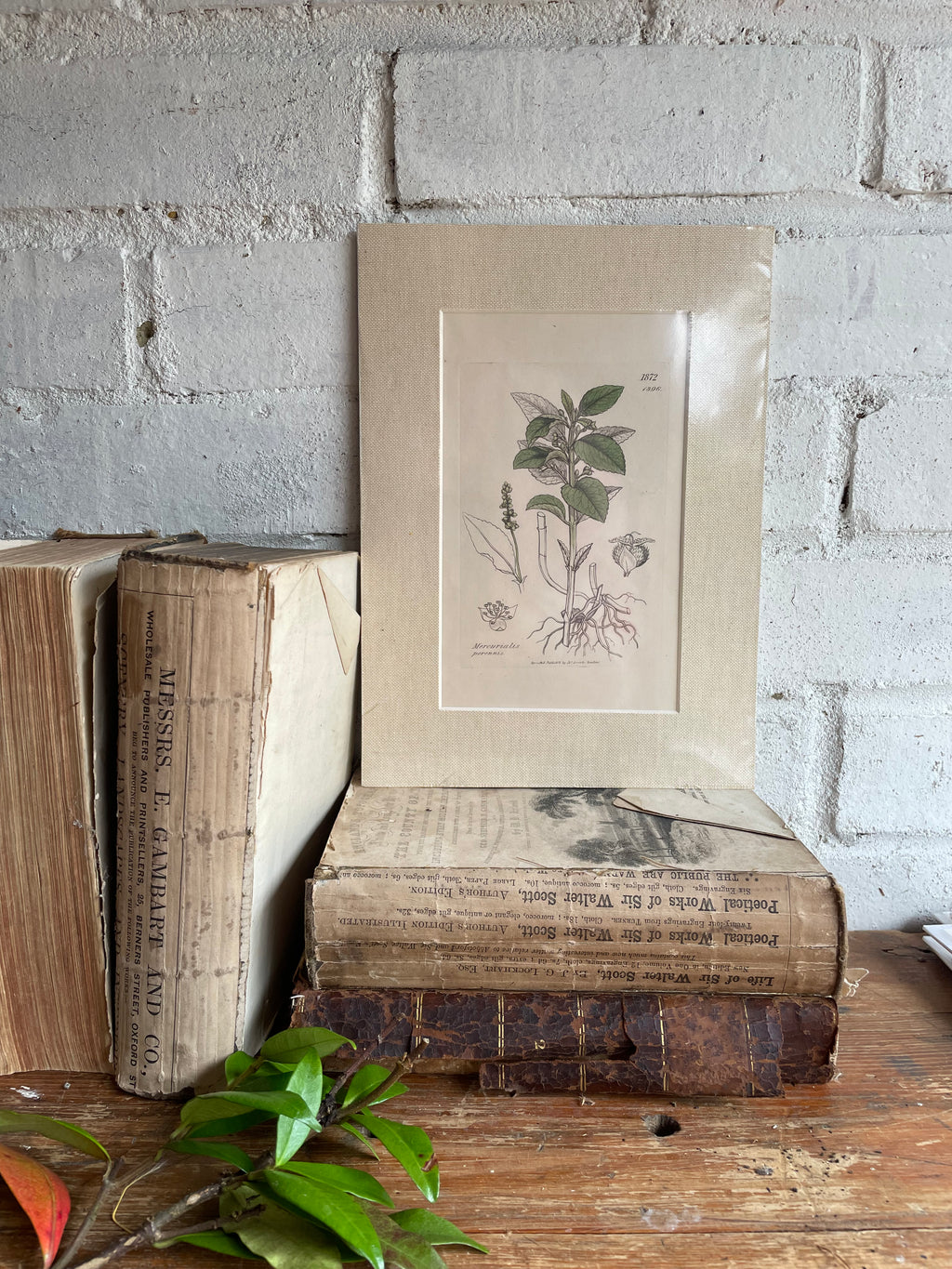 19th Century Botanical Illustration with Linen Mount - Lamium Purpureum