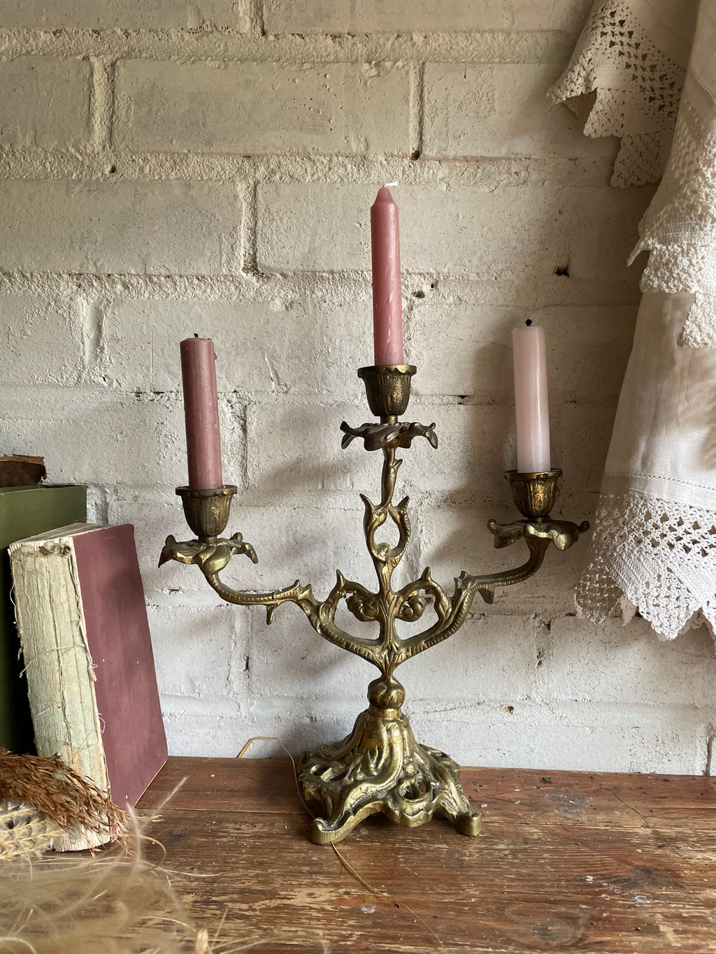 19th Century Brass Wall Hung Candleholder with Flower Posy