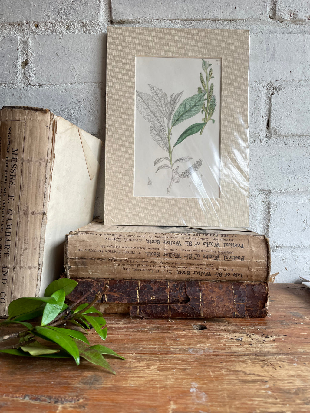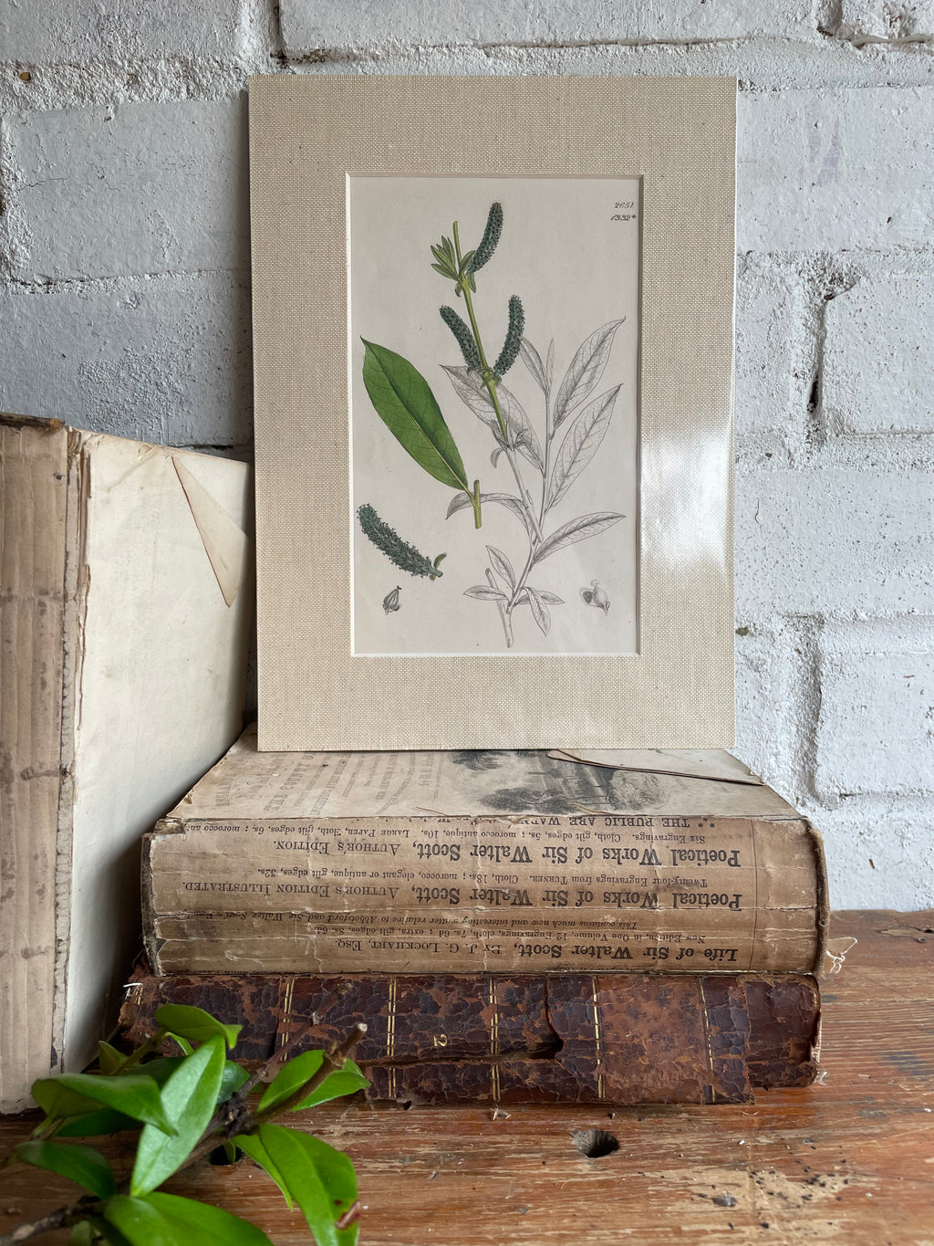 19th Century Botanical Illustration with Linen Mount - Mercurialis Perennis