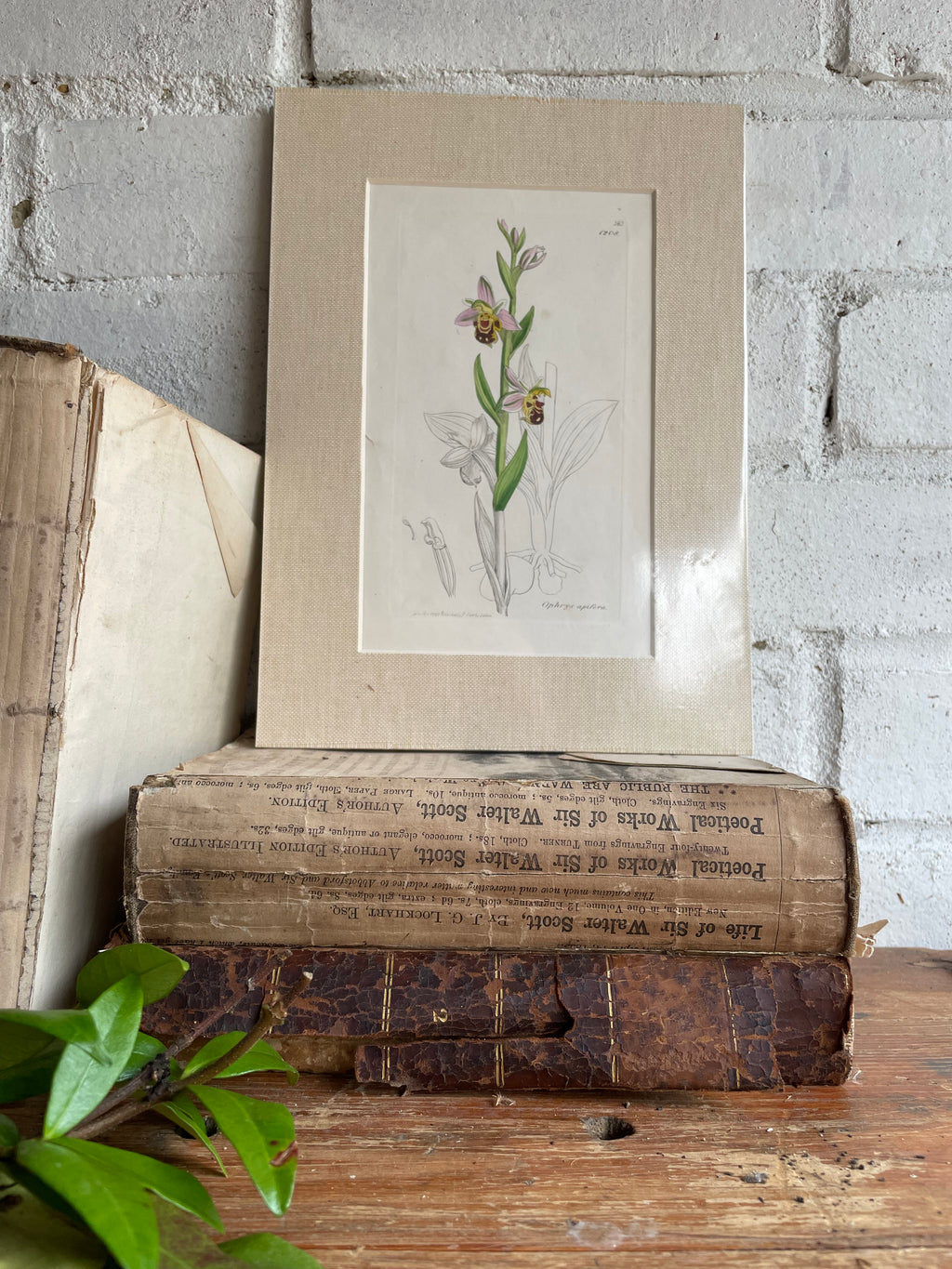 19th Century Botanical Illustration with Linen Mount - Orphrys Apifera