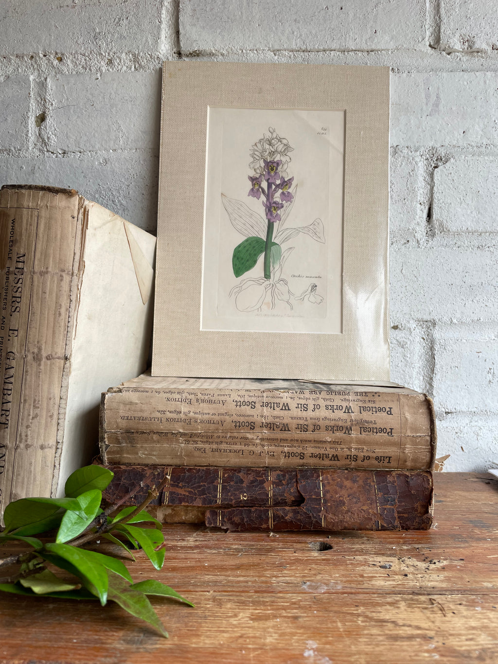 19th Century Botanical Illustration with Linen Mount - Orchis Mascula