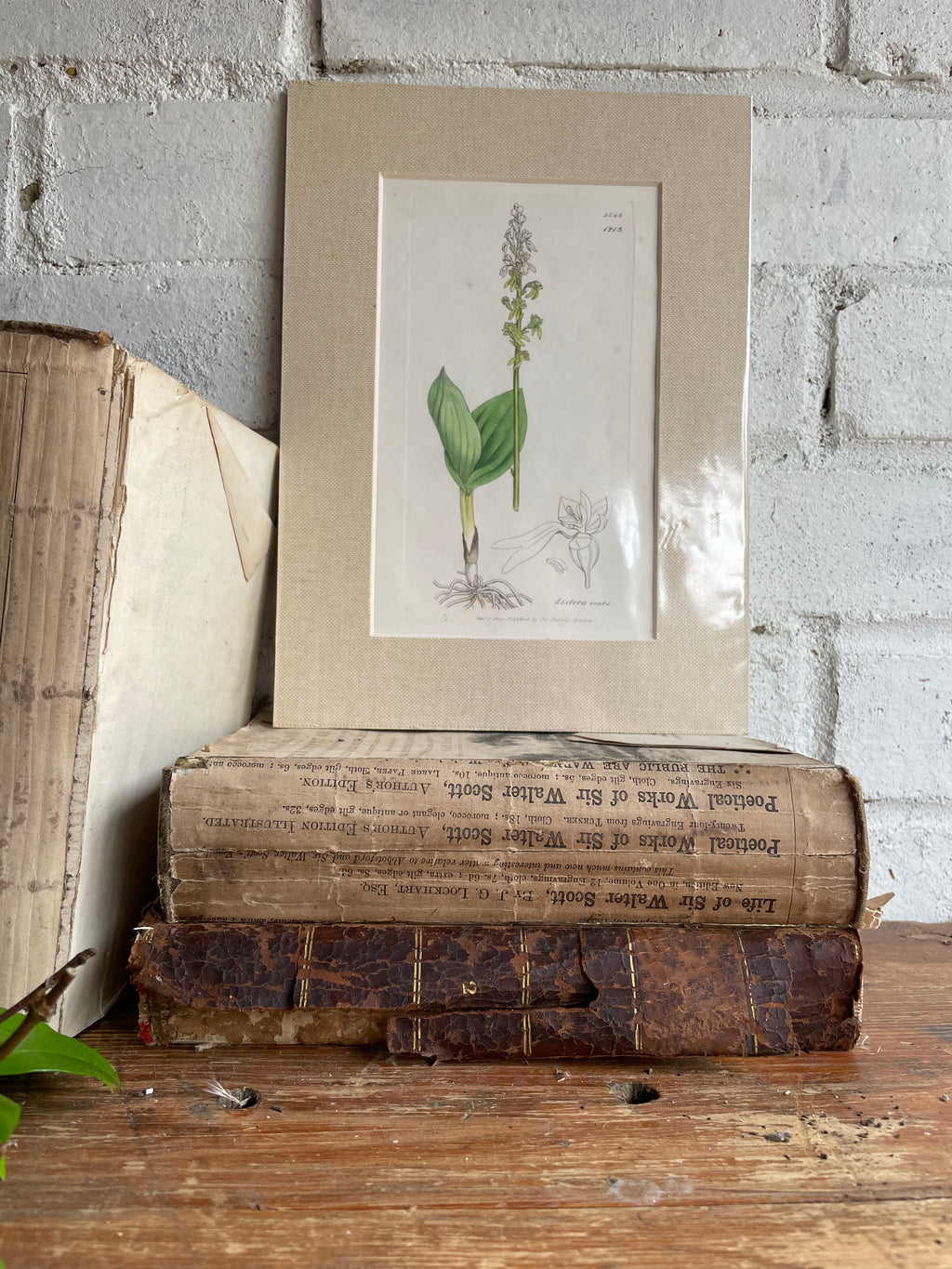 19th Century Botanical Illustration with Linen Mount - Listera Ovata