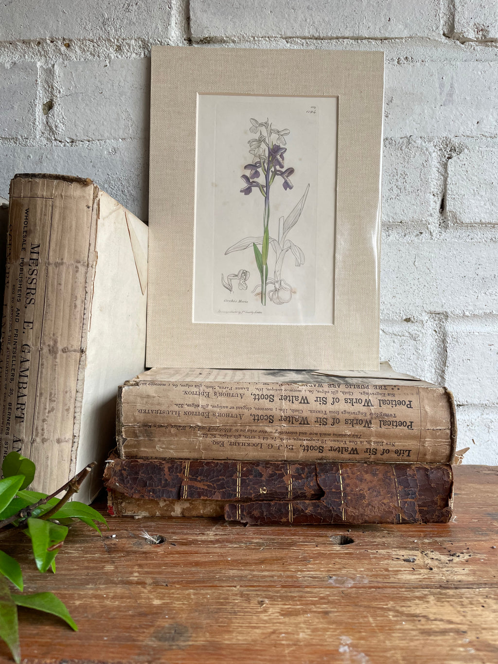 19th Century Botanical Illustration with Linen Mount - Orchis Morio