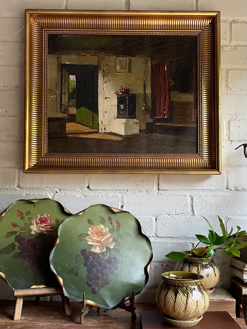 Still Life with an Open Door: Oil on Canvas with Gilt Frame