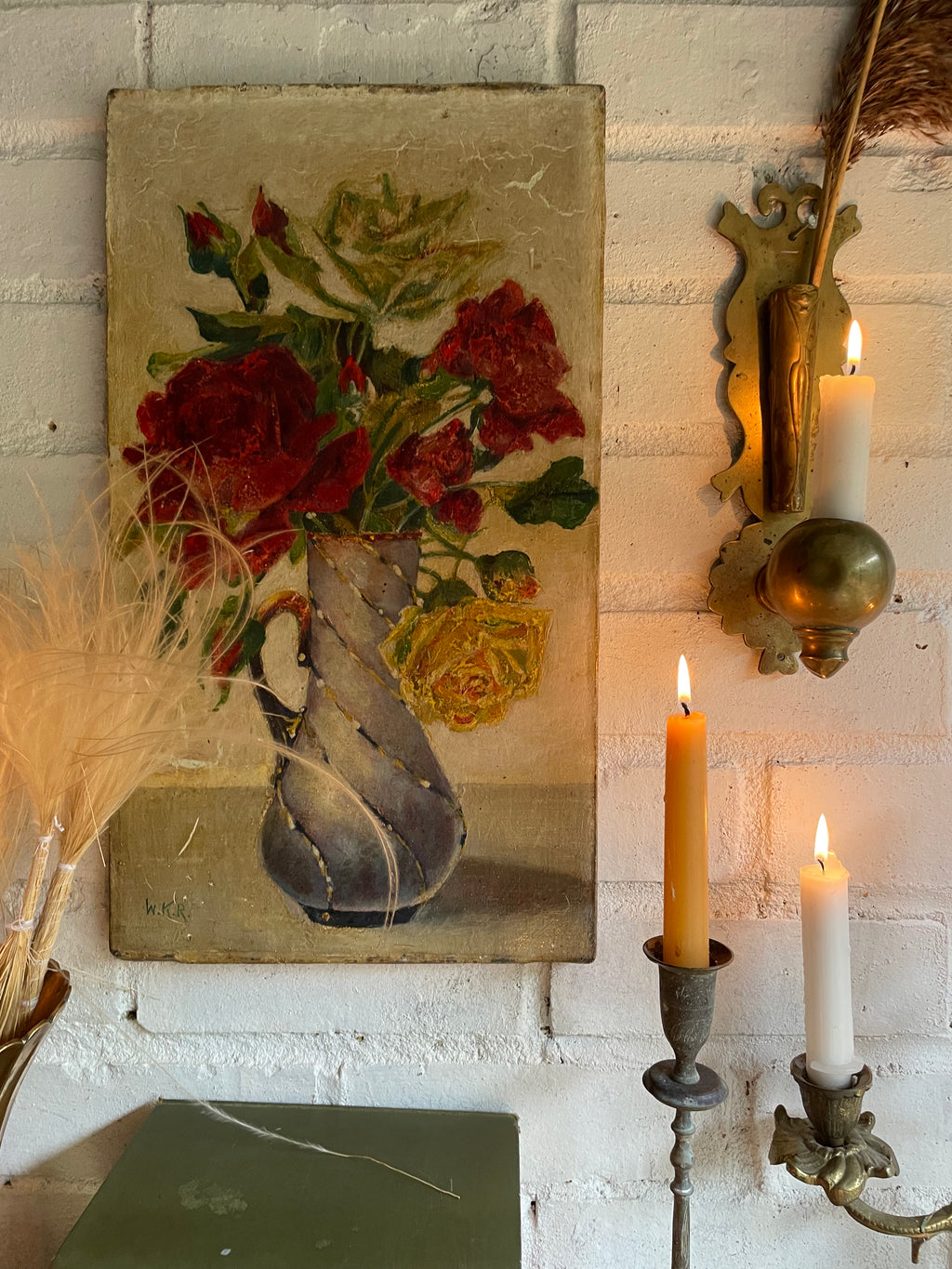 Antique Floral Oil on Canvas