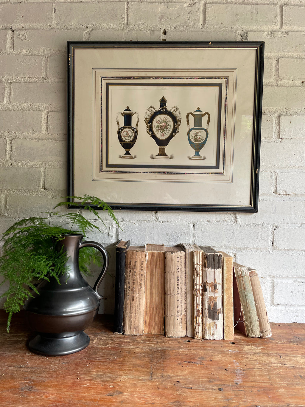 Coloured Antique Print of Sevres Porcelain Urns