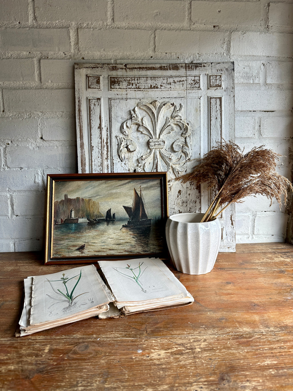 Muted Seascape with Lighthouse: Small Framed Oil on Board