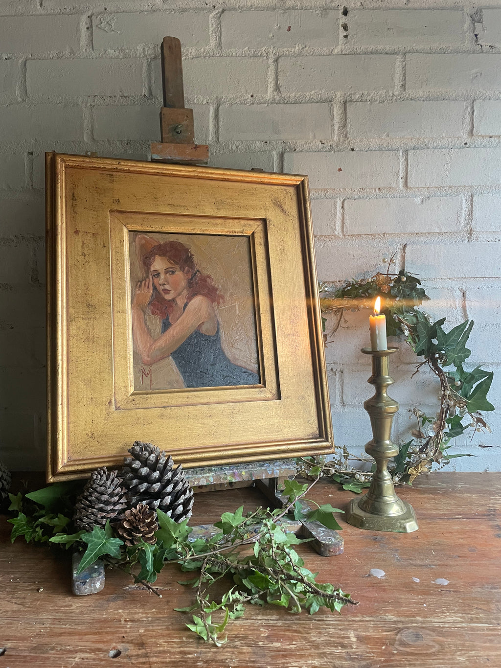 Lady with Red Hair: Midcentury Framed Oil on Board