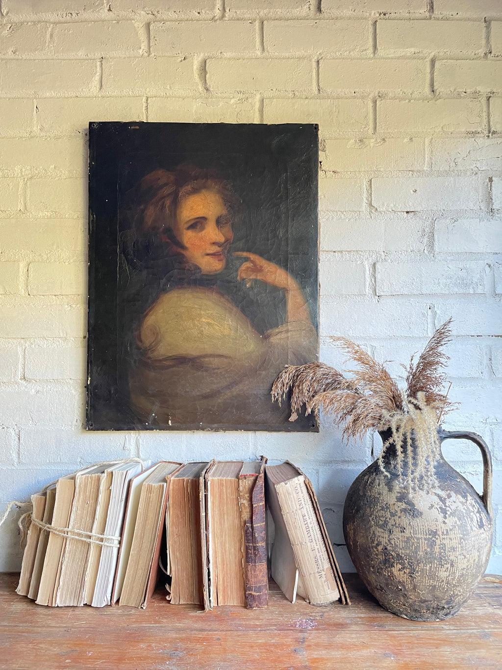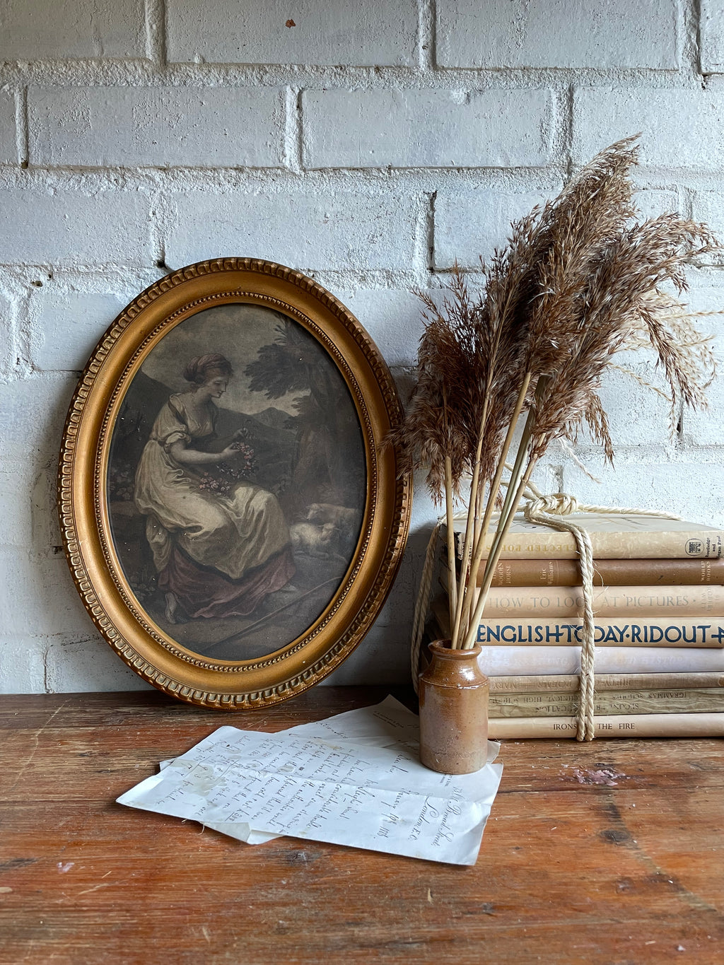 Antique Framed Lithographic Print of a Lady with Flower Garland